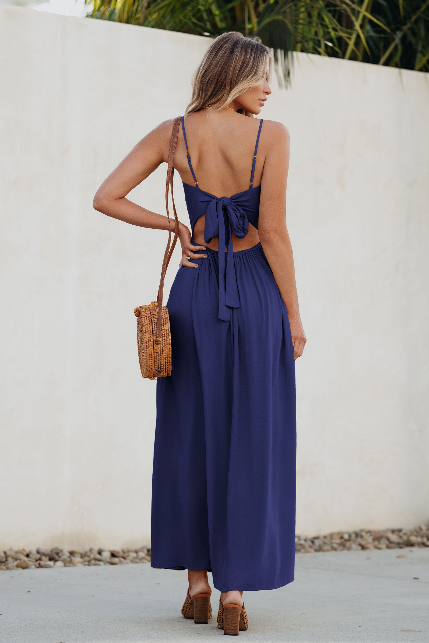 InicioVestido largo azul marino con efecto Twist