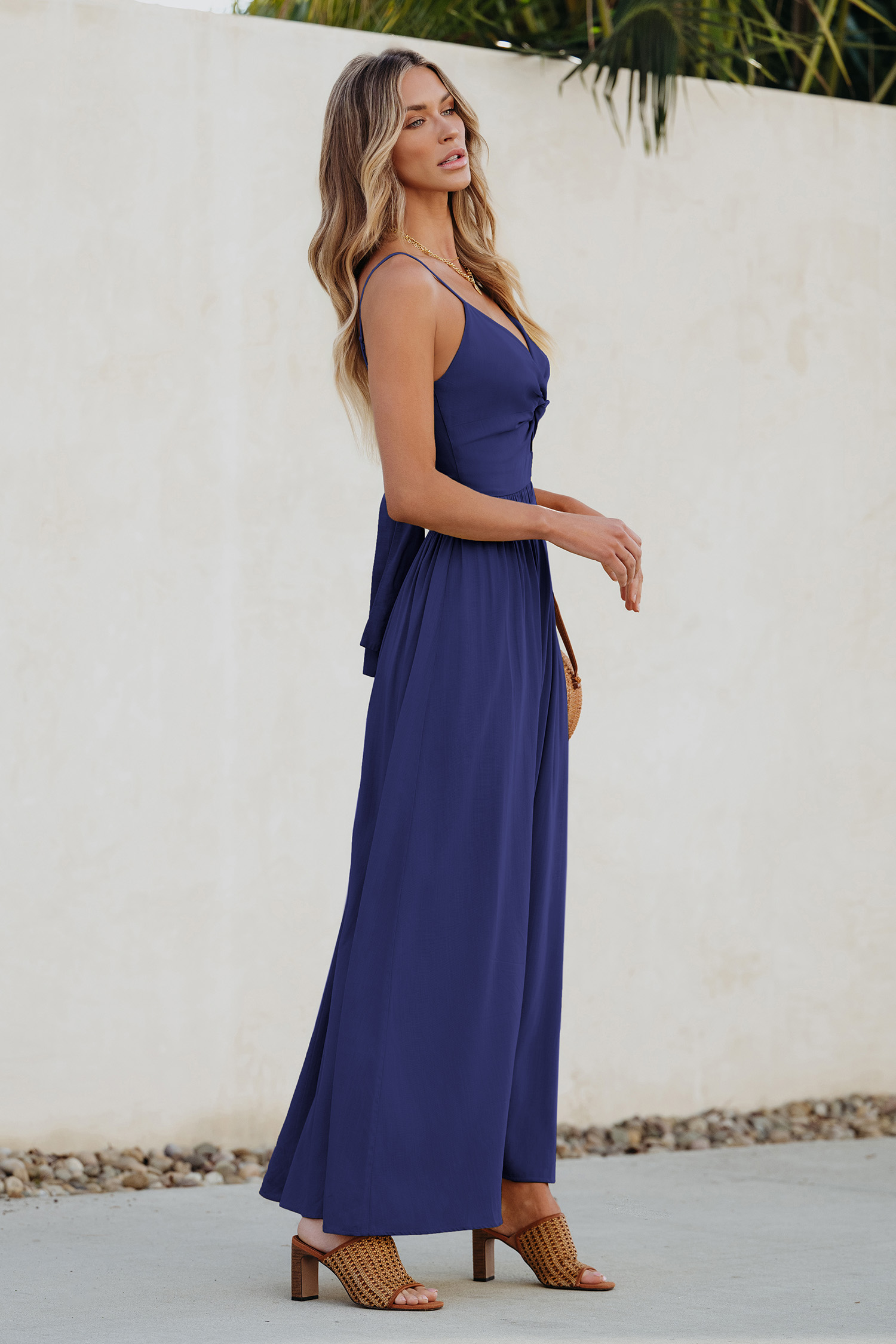 Vestido largo azul marino con efecto Twist