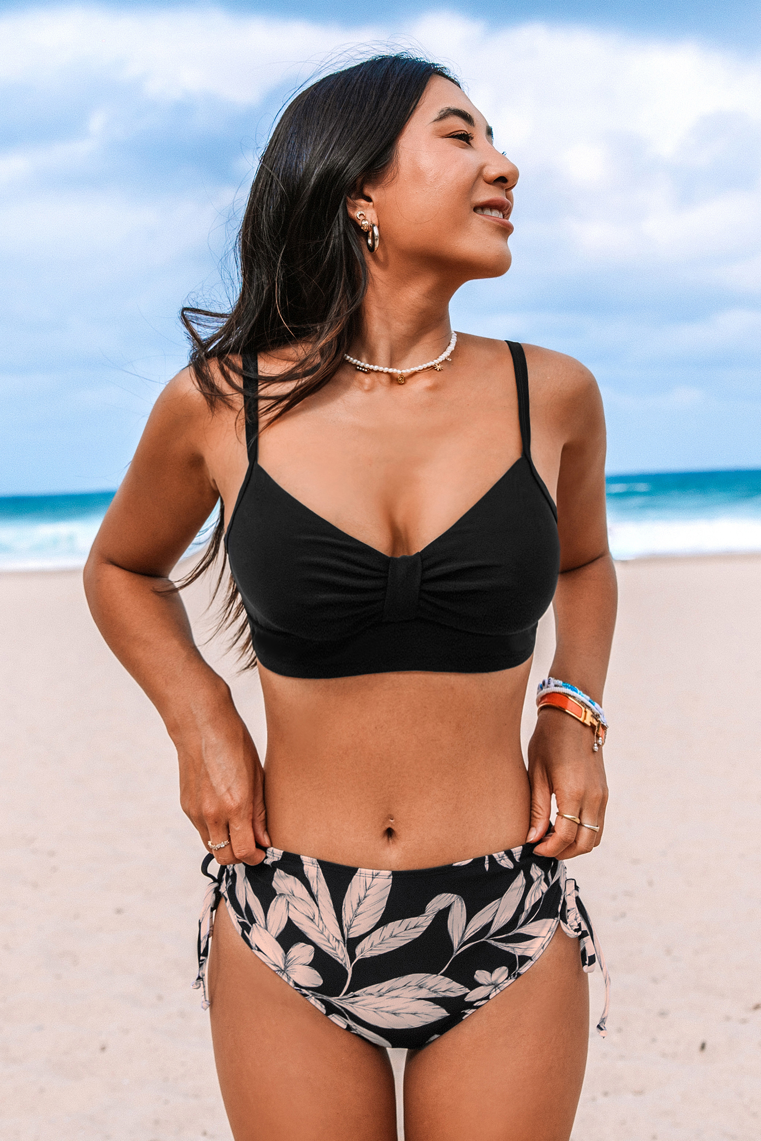 Conjunto de top de bikini con escote en forma de corazón y braguitas tropicales de talle alto de Escaping