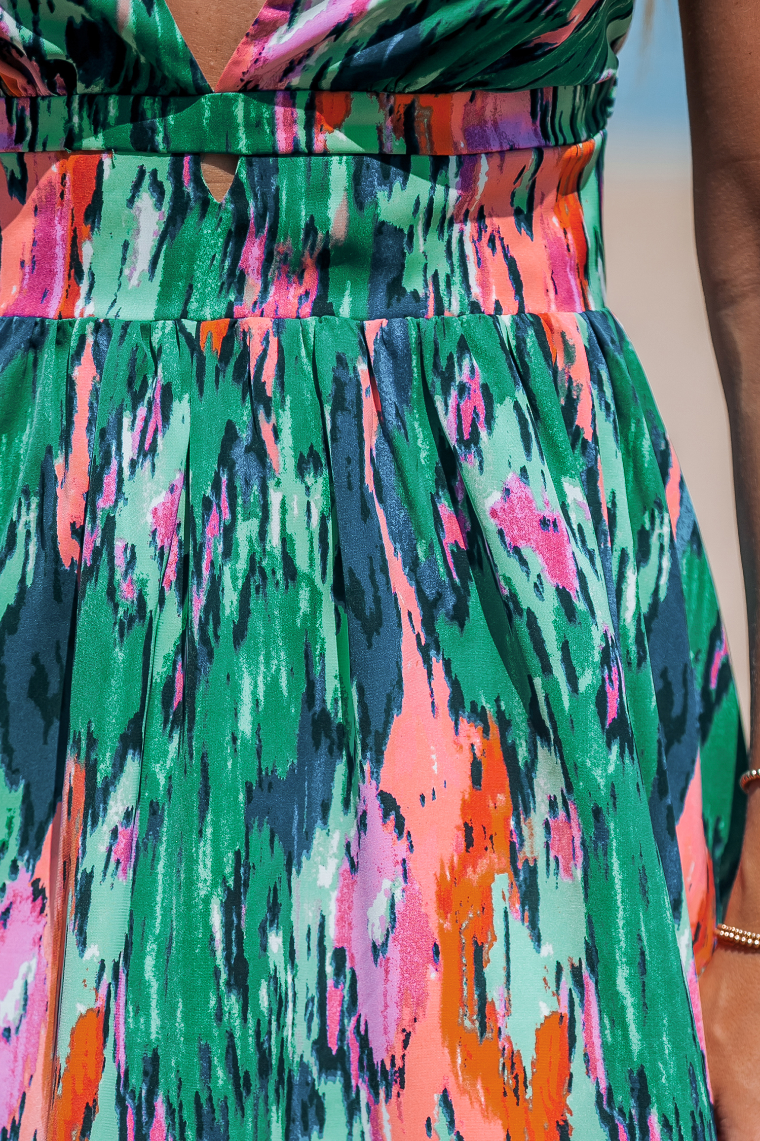 Vestido midi con abertura en forma de cerradura sin mangas y escote abstracto