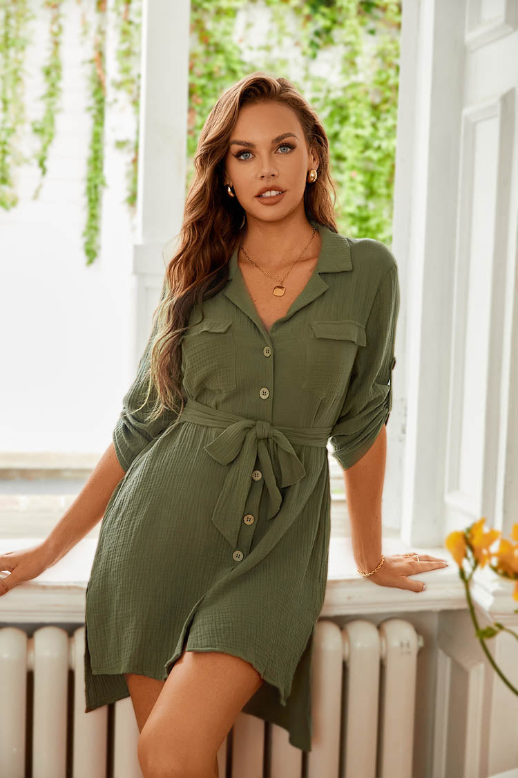 Addy Vestido camisero con mangas largas y cinturón