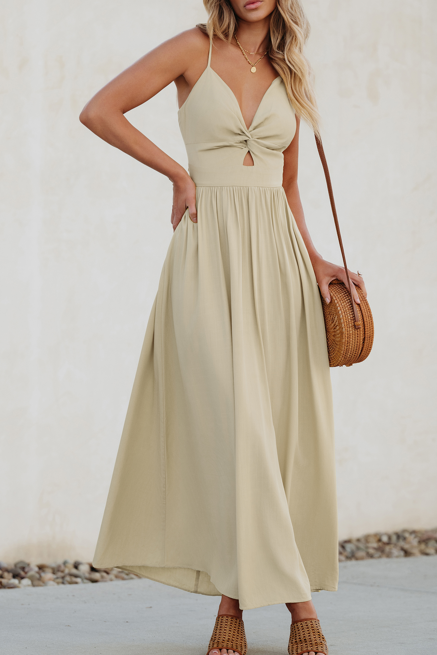 Vestido largo con escote en forma de corazón y abertura en forma de cerradura albaricoque