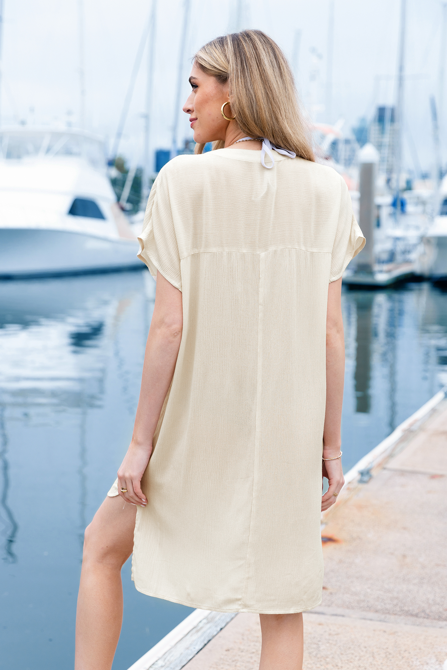 Minivestido tipo pareo con cuello en V color albaricoque