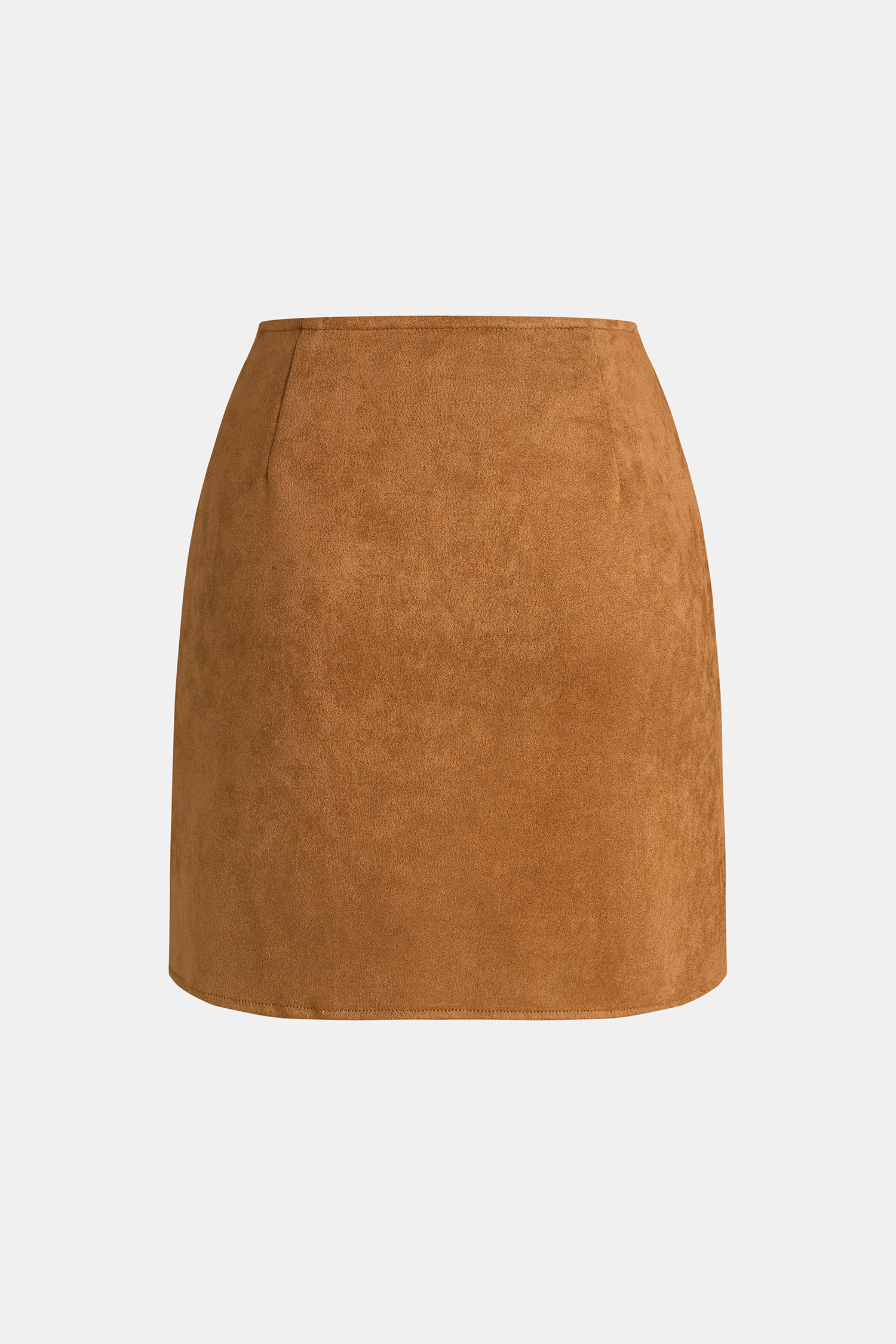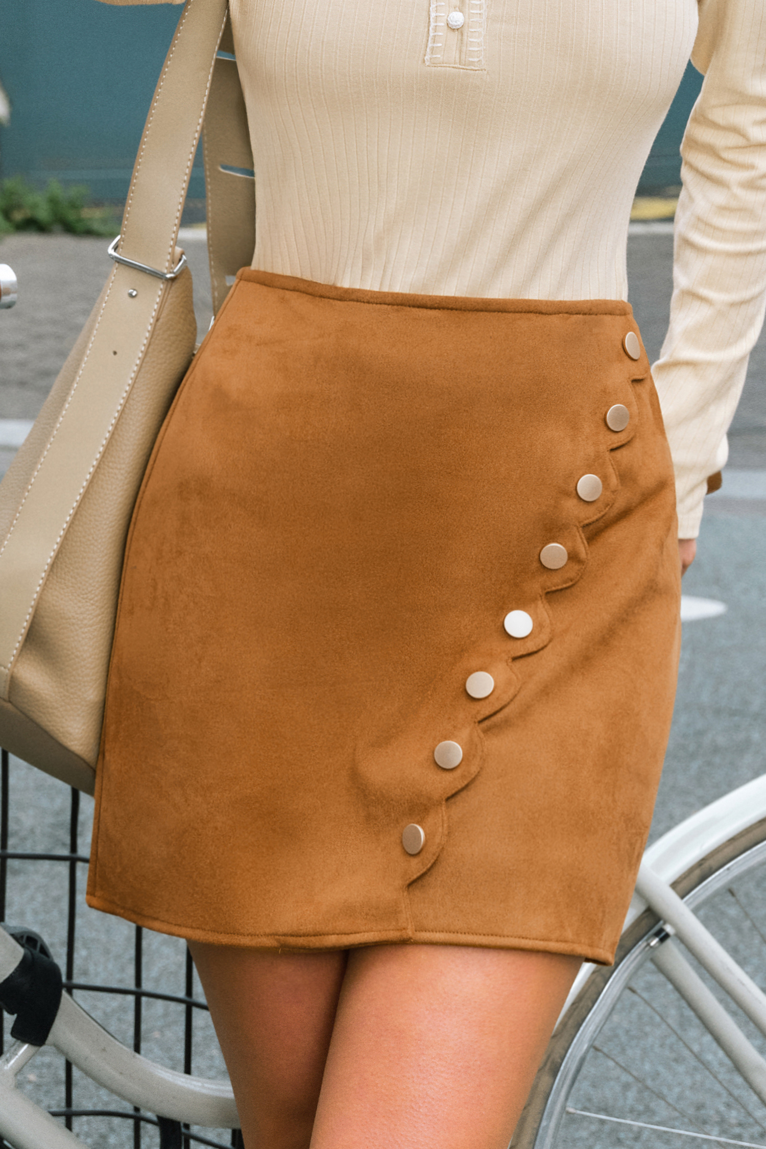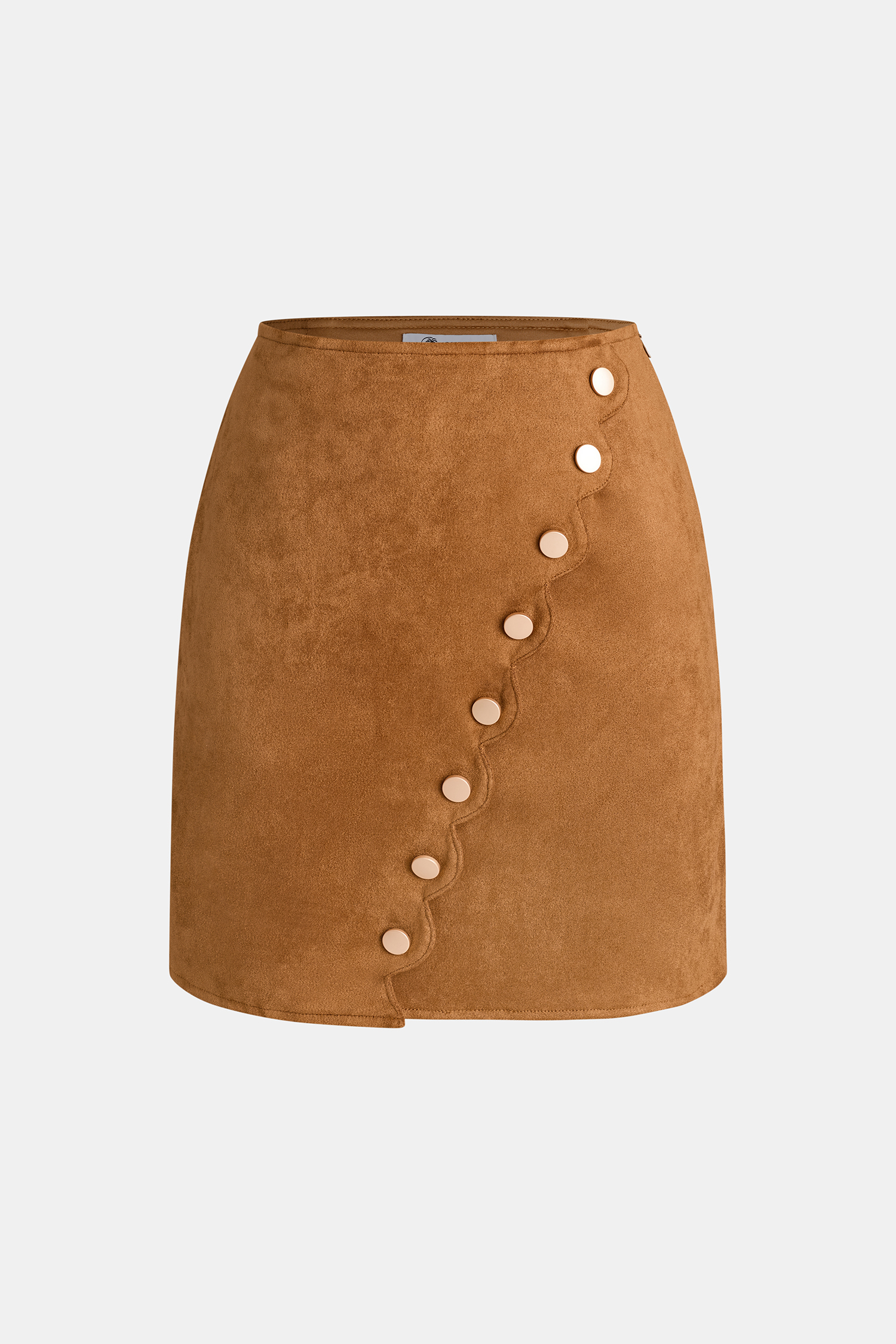 La minifalda marrón Autumn Stroll añade un toque divertido y festivo a cualquier look. Su corte asimétrico de ante sintético con botones al frente y su largo mini le dan un acabado versátil.