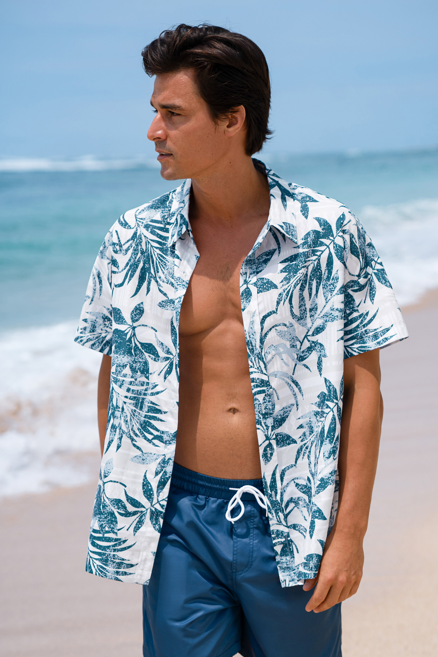 ¡La camisa Baja Breeze Tropical está lista para las horas doradas y los días tranquilos! Con cuello, mangas cortas y botones clásicos al frente, es tu prenda ideal para el verano.