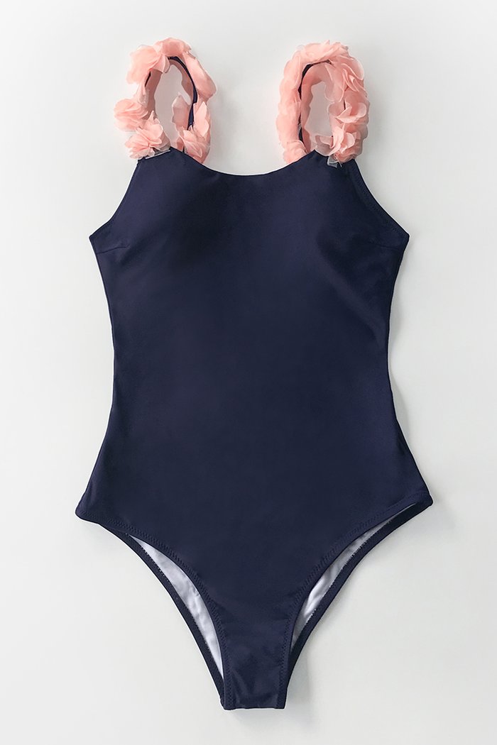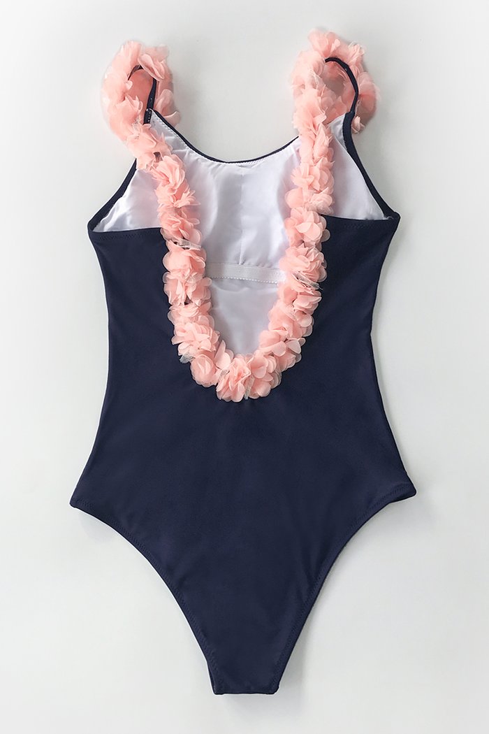 Traje de baño de una pieza con espalda con cordones y aleteo floral
