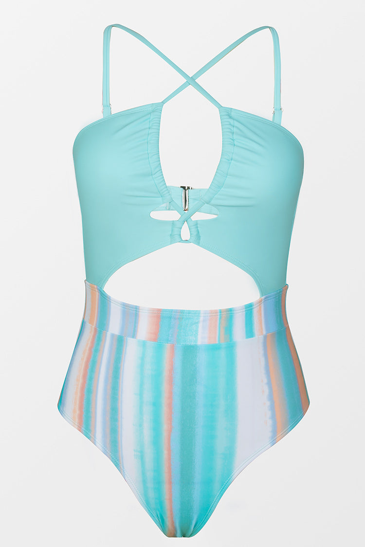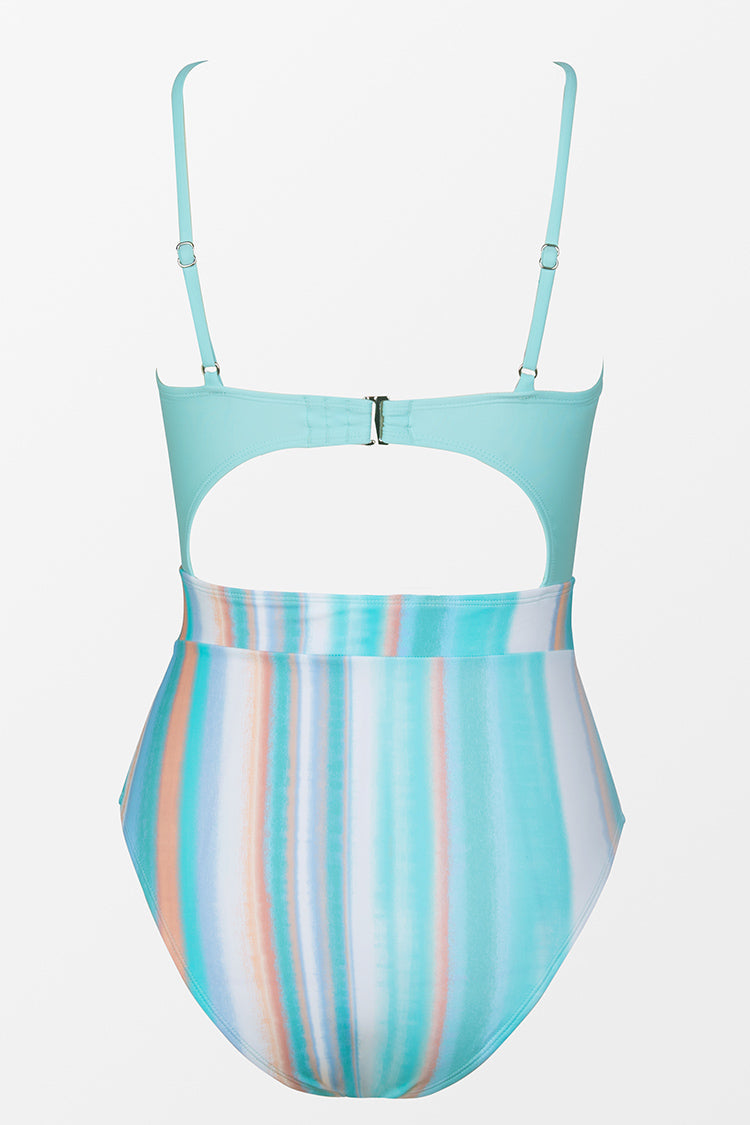 Bañador de rayas y con recortes tunelizados