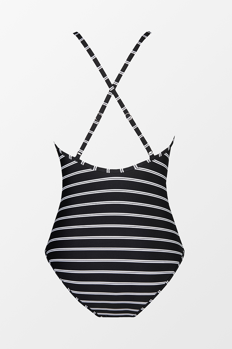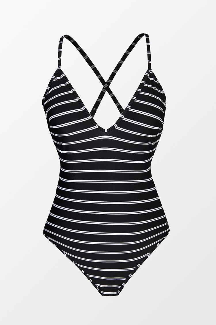 Bañador de Una Pieza a Rayas con Cuello en V y Espalda Cruzada