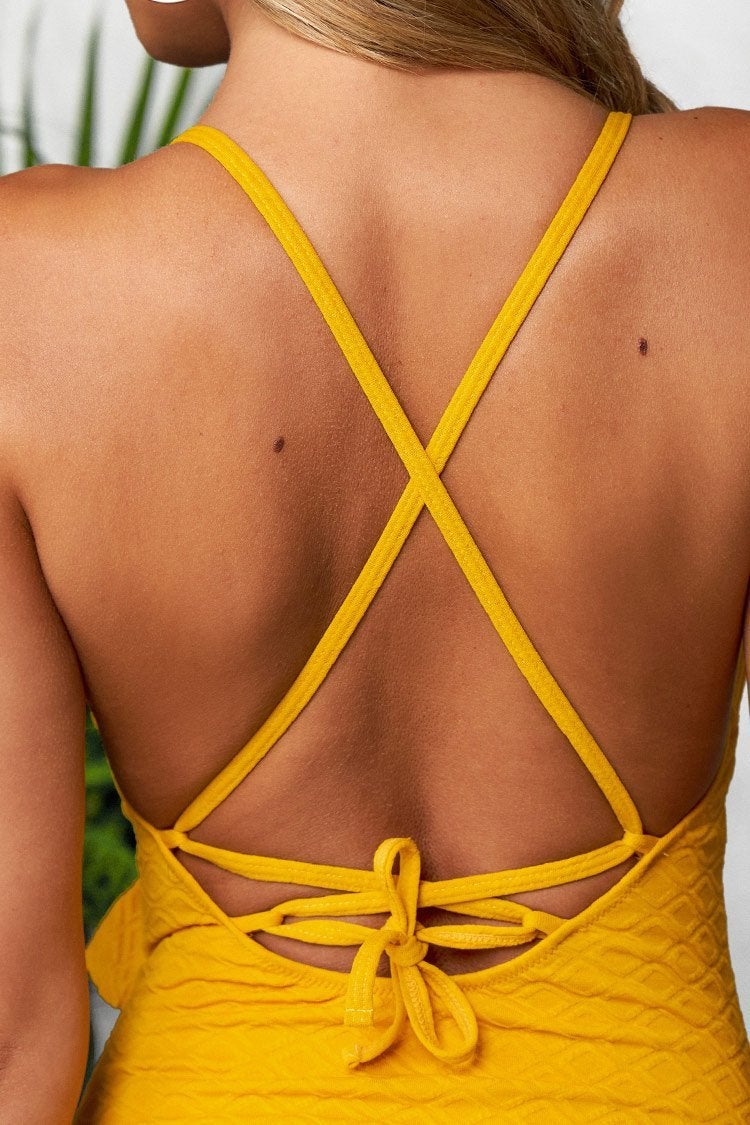 InicioBañador de Una Pieza Amarillo con Olanes y Tirantes Atados