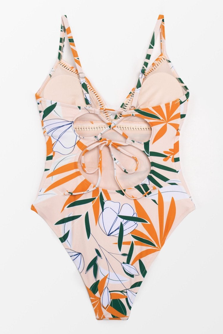 Bañador de Una Pieza Jade Tropical con Tirantes Atados