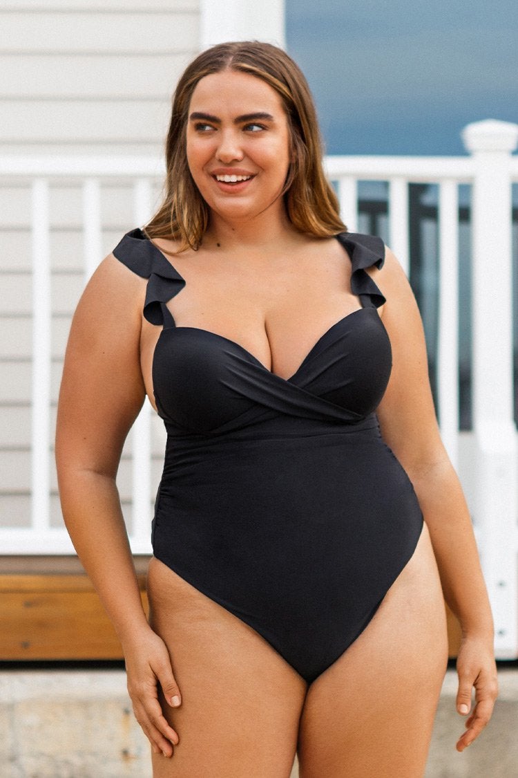 Bañador de Una Pieza Serena Black con Olanes Talla Grande