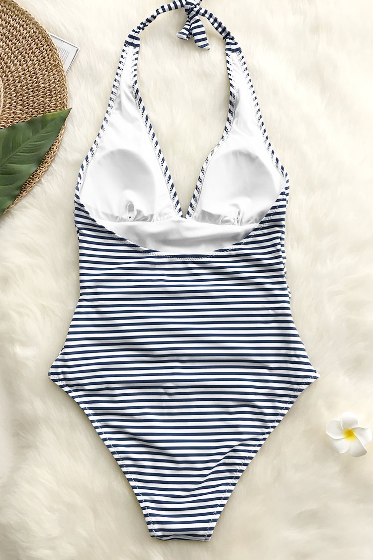 Bañador Halter Rayas Azules y Blancas de Una Pieza