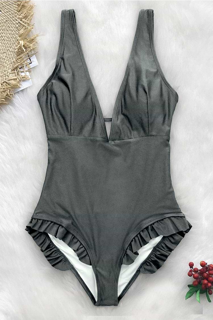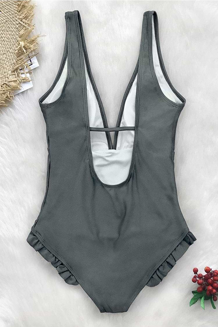 Traje de baño de una pieza con recorte envuelto y florecitas amarillas