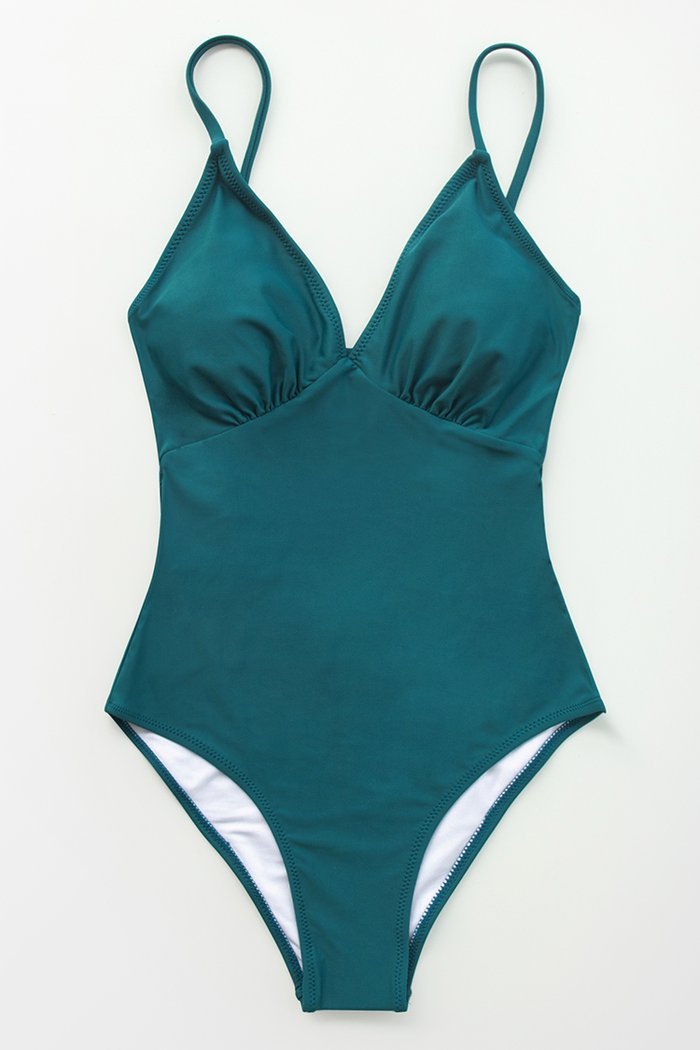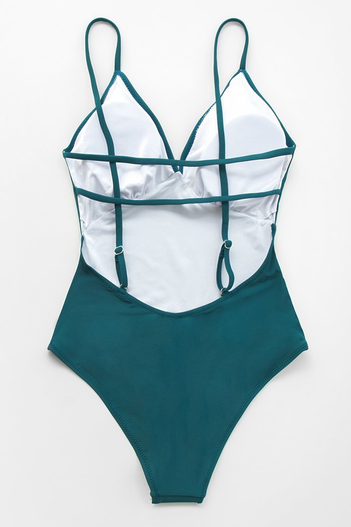 Bañador verde azulado oscuro con escote V