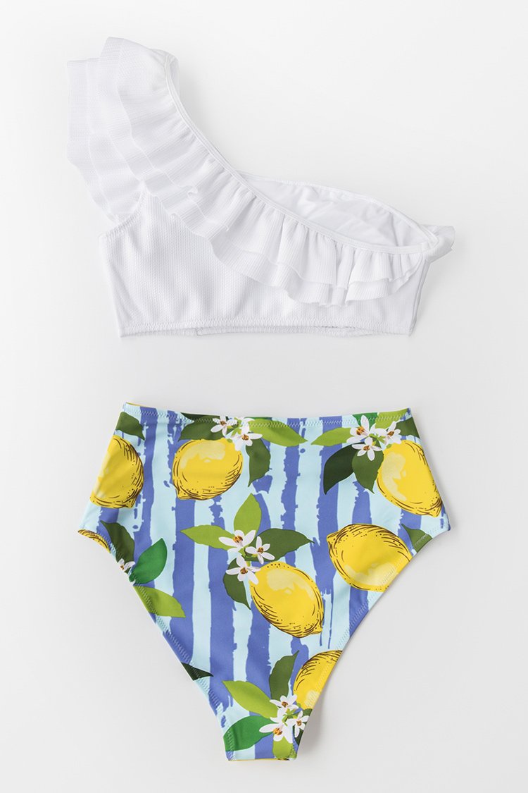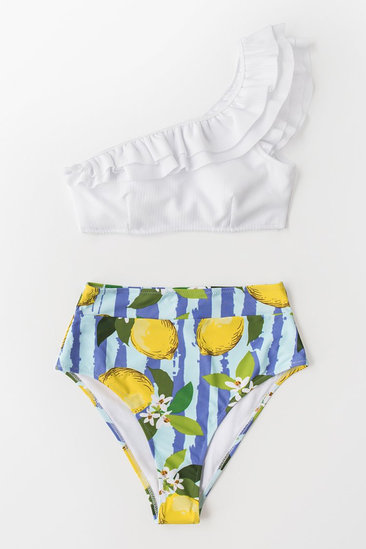 Bikini Blanco y Limón de Un Hombro
