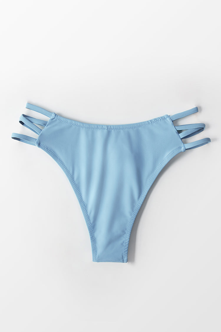 Bikini bottom de color azulado y con lazos laterales