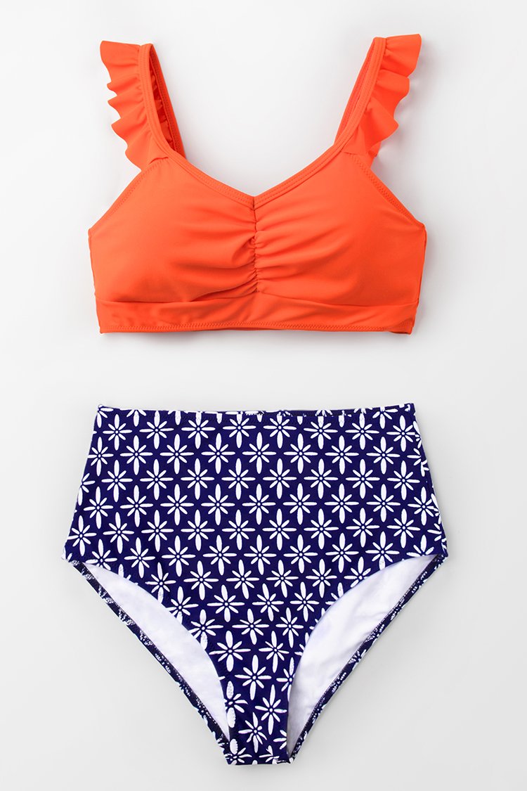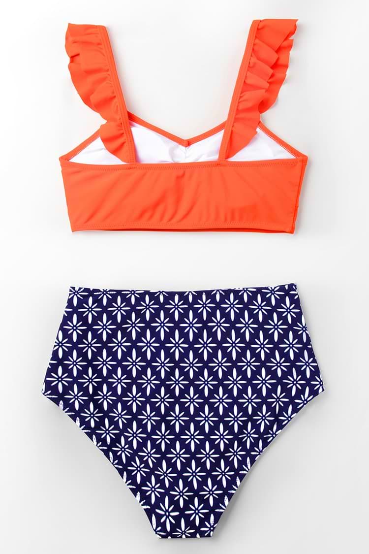 InicioBikini Cintura Alta Con Volantes y Mandarina