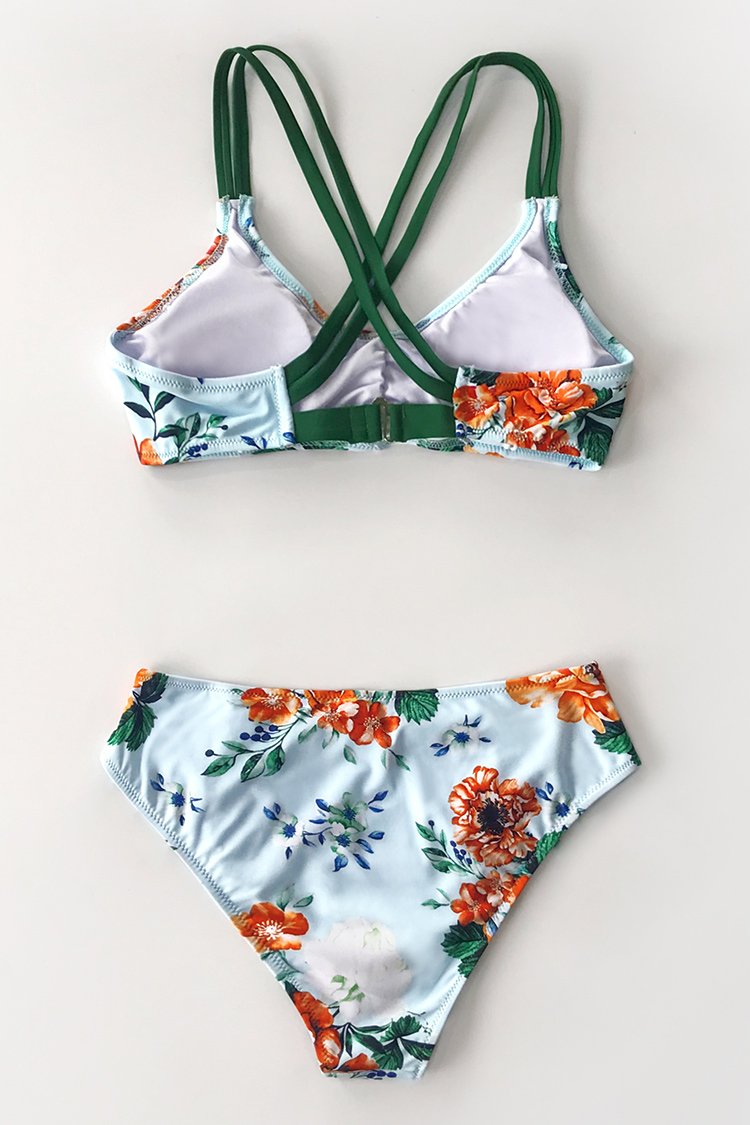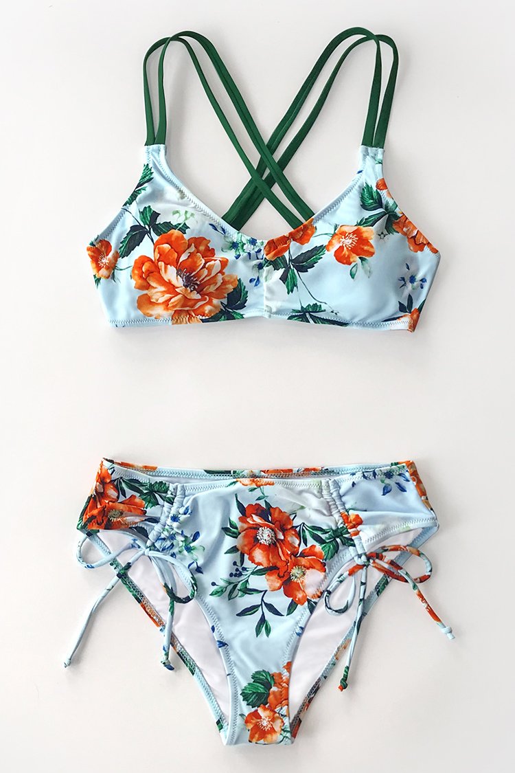 Bikini con cordón estampado de peonía