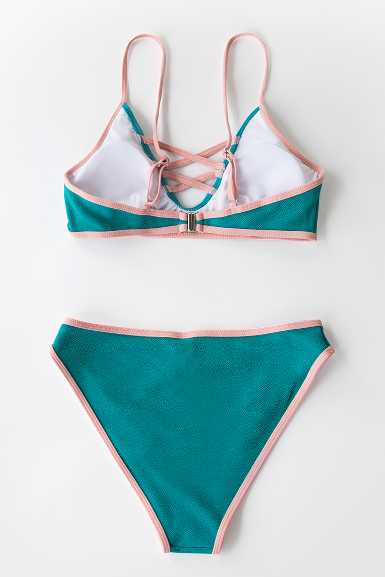 Bikini con tiras rosa y verde azulado