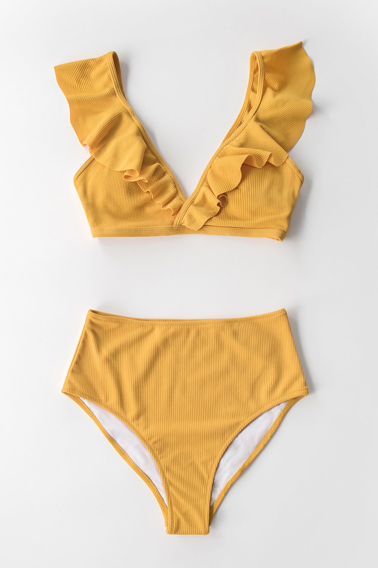 Bikini de cintura alta de canalé amarillo