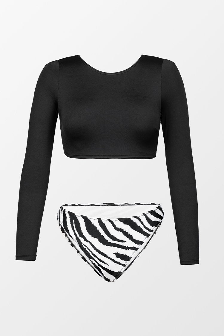 Bikini de manga larga con gancho trasero y estampado de cebra de Katrina
