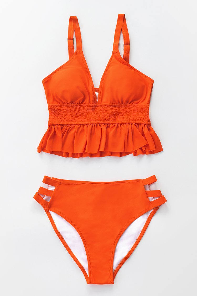 Bikini con Volante Naranja Ahumado