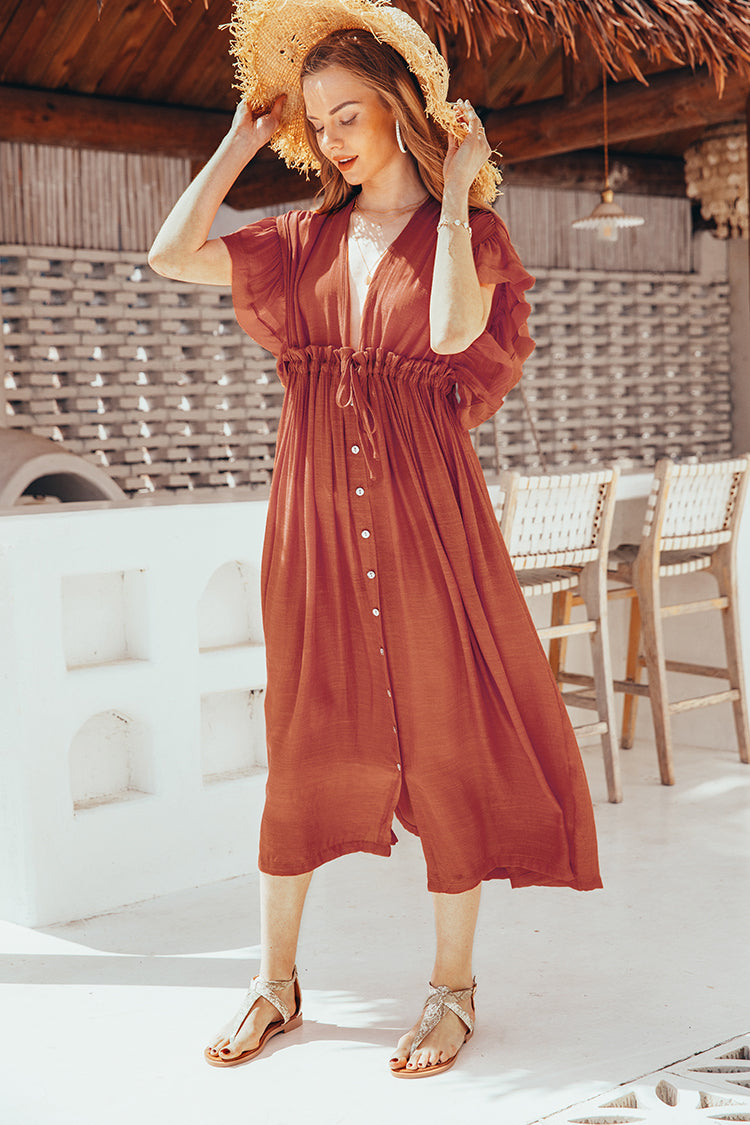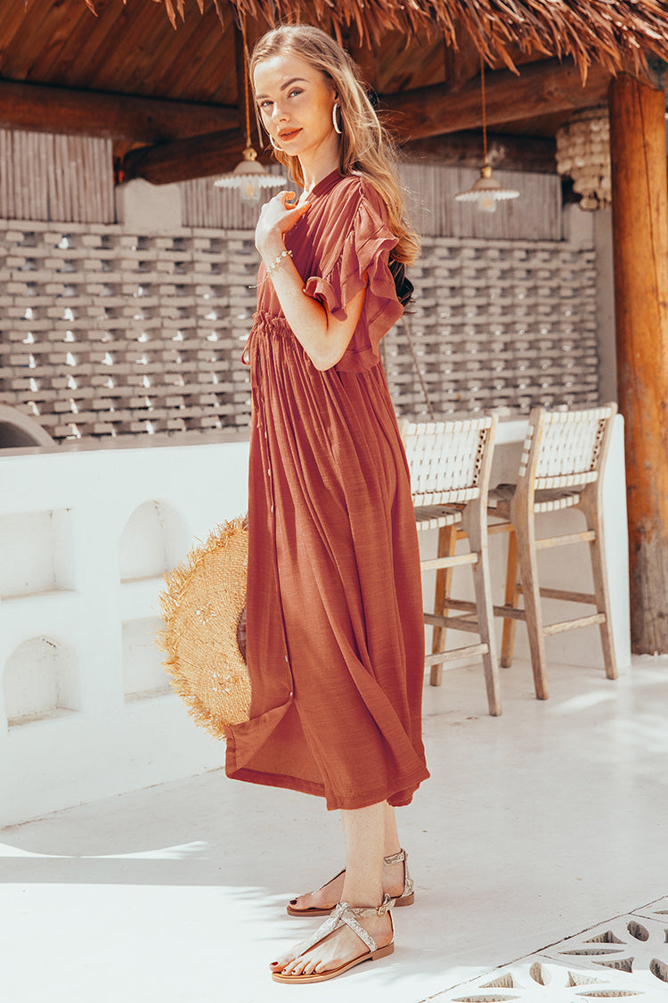 InicioBillie Burnt Vestido Cover up naranjo con volantes