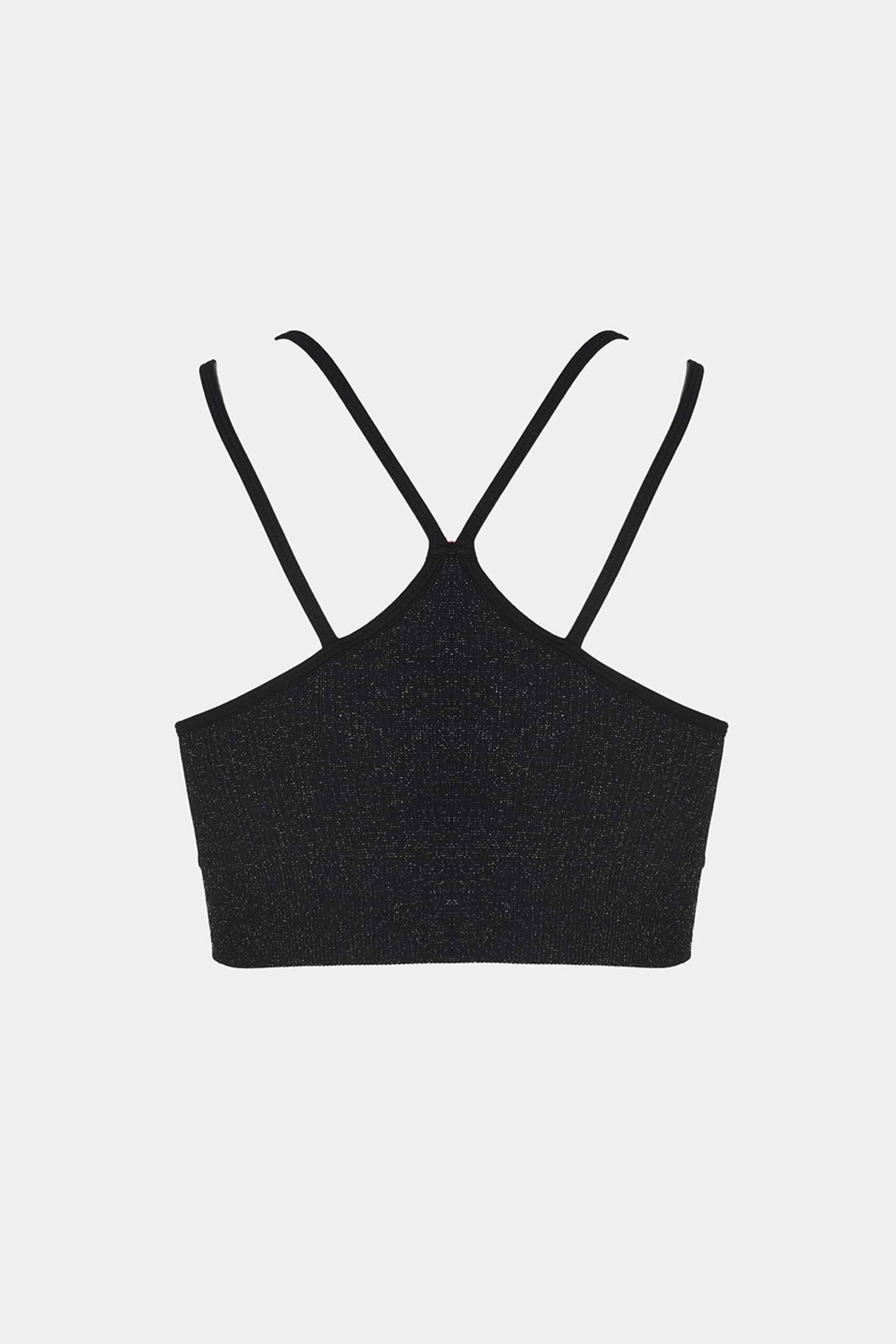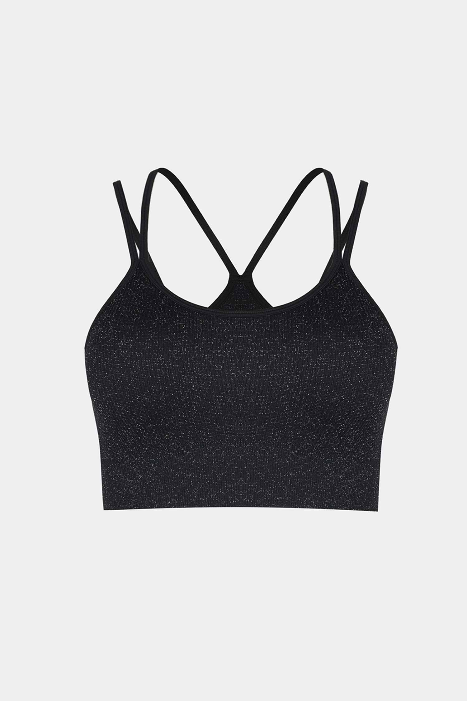 Top activo recortado con doble tirante negro sin costuras
