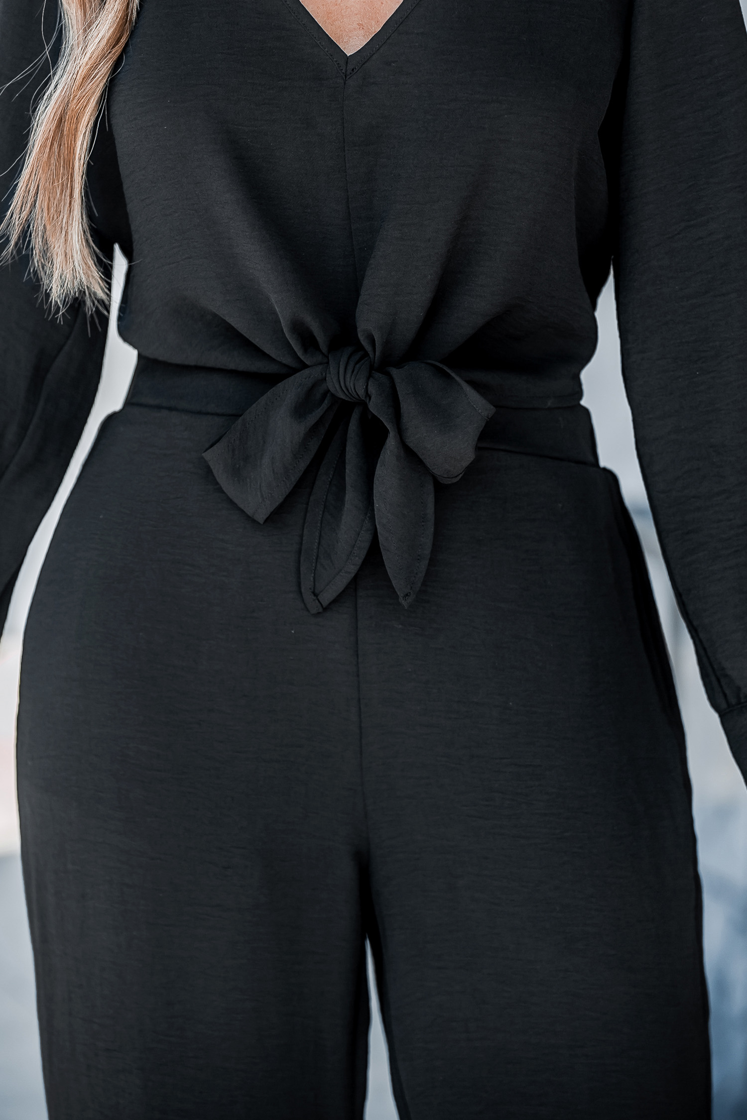 Conjunto de camiseta de manga larga negra y pantalones anchos