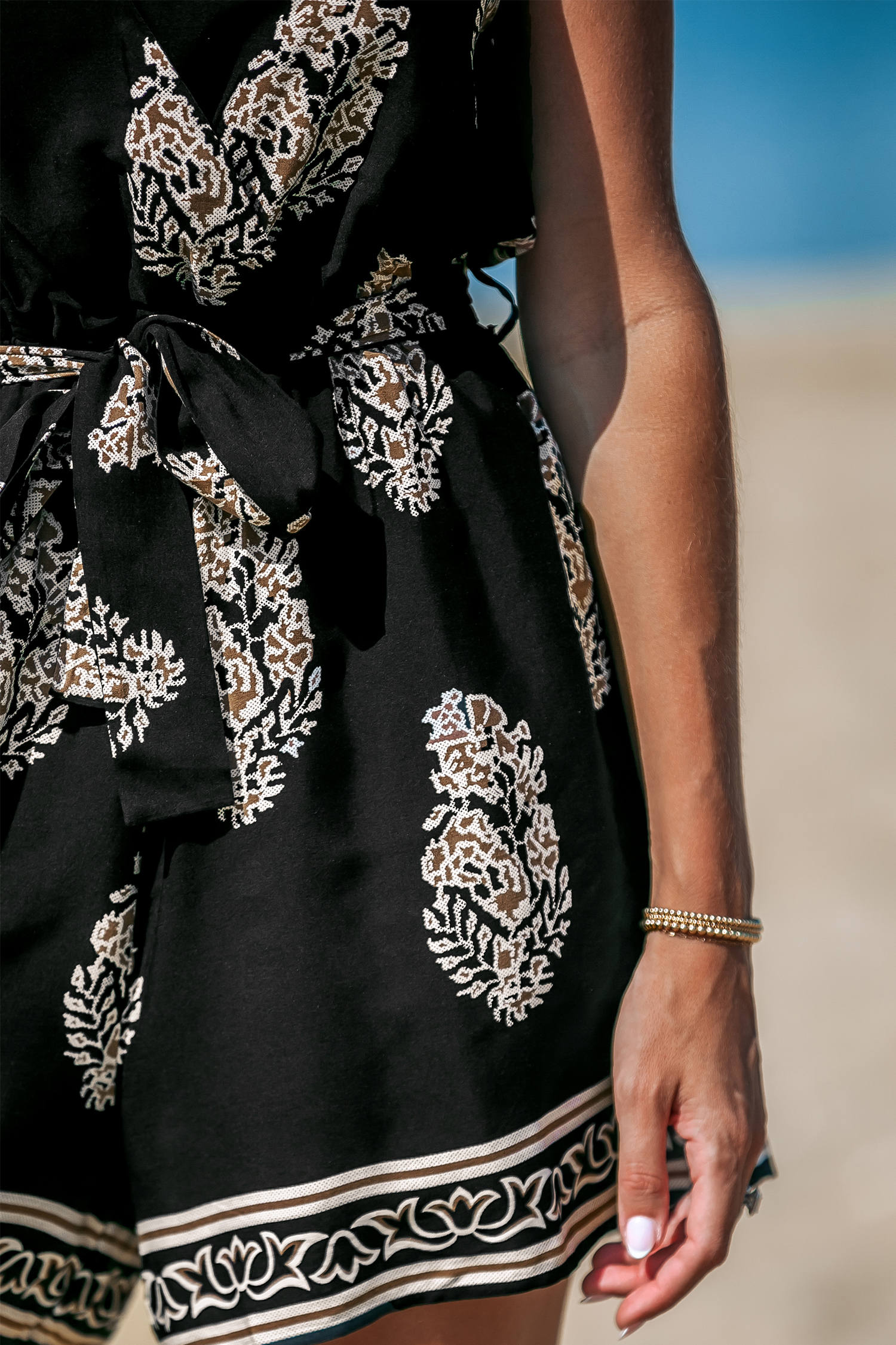 Mono de pierna recta con sobrepelliz adornado en negro