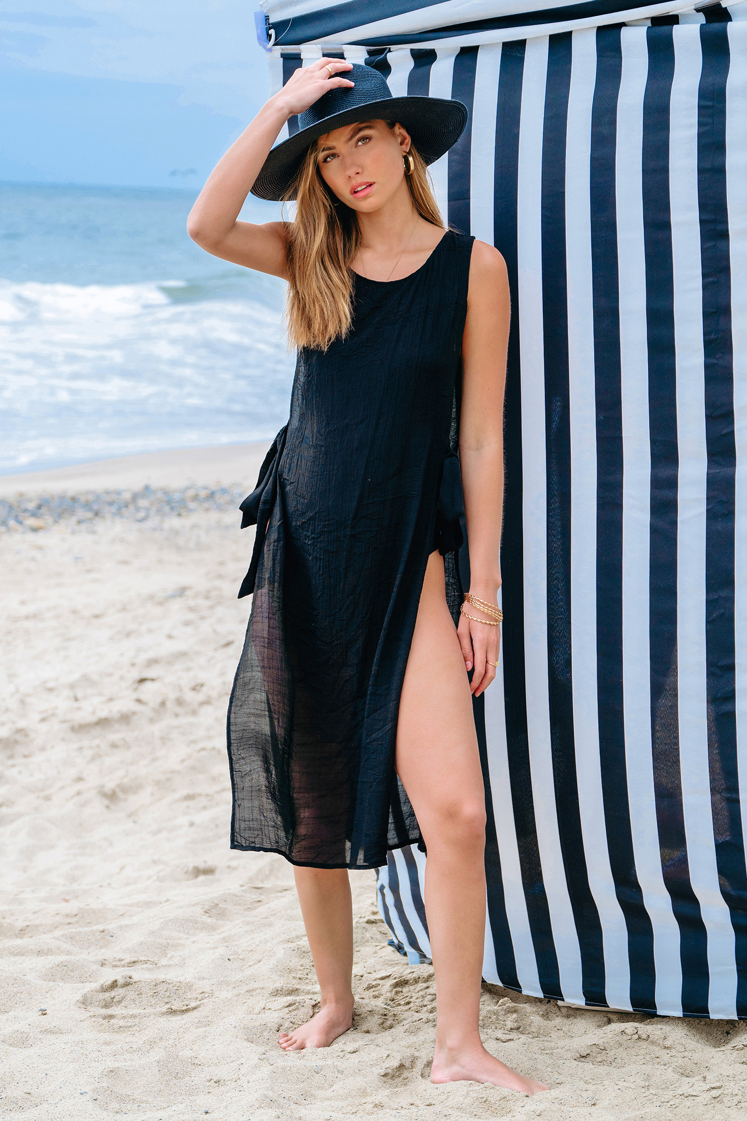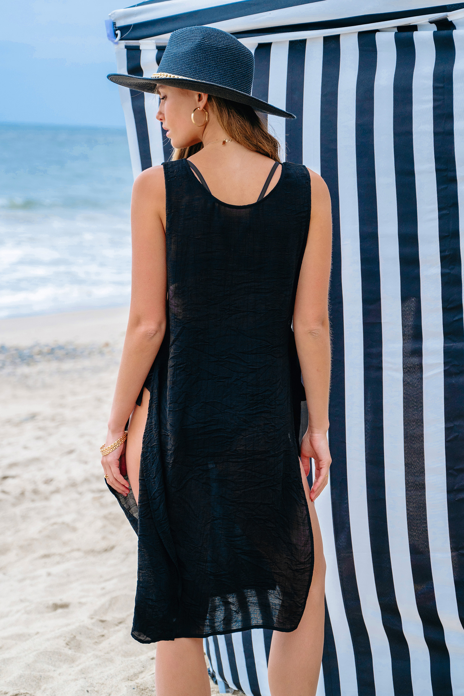 Minivestido encubrimiento sin mangas con cuello redondo negro