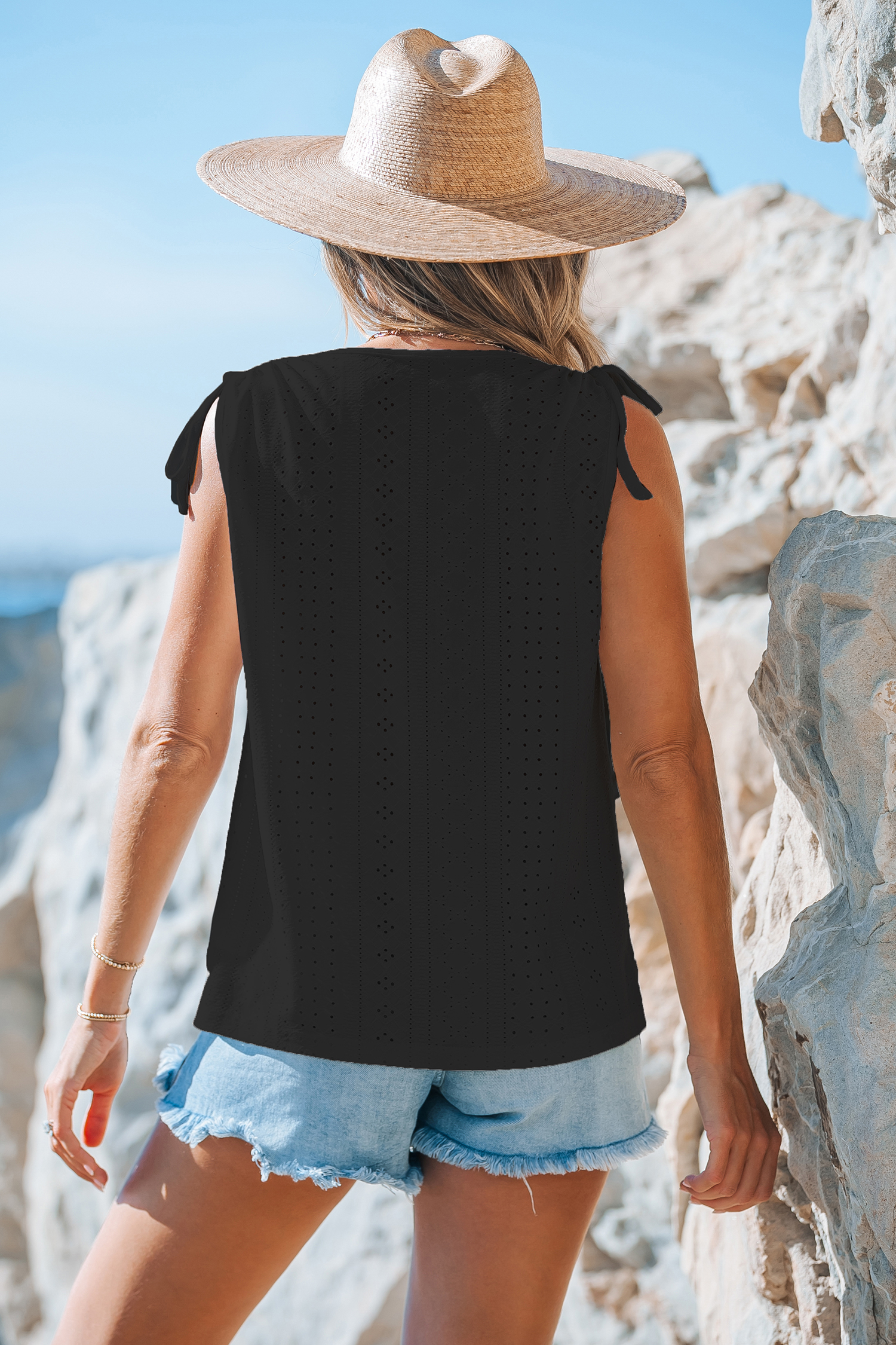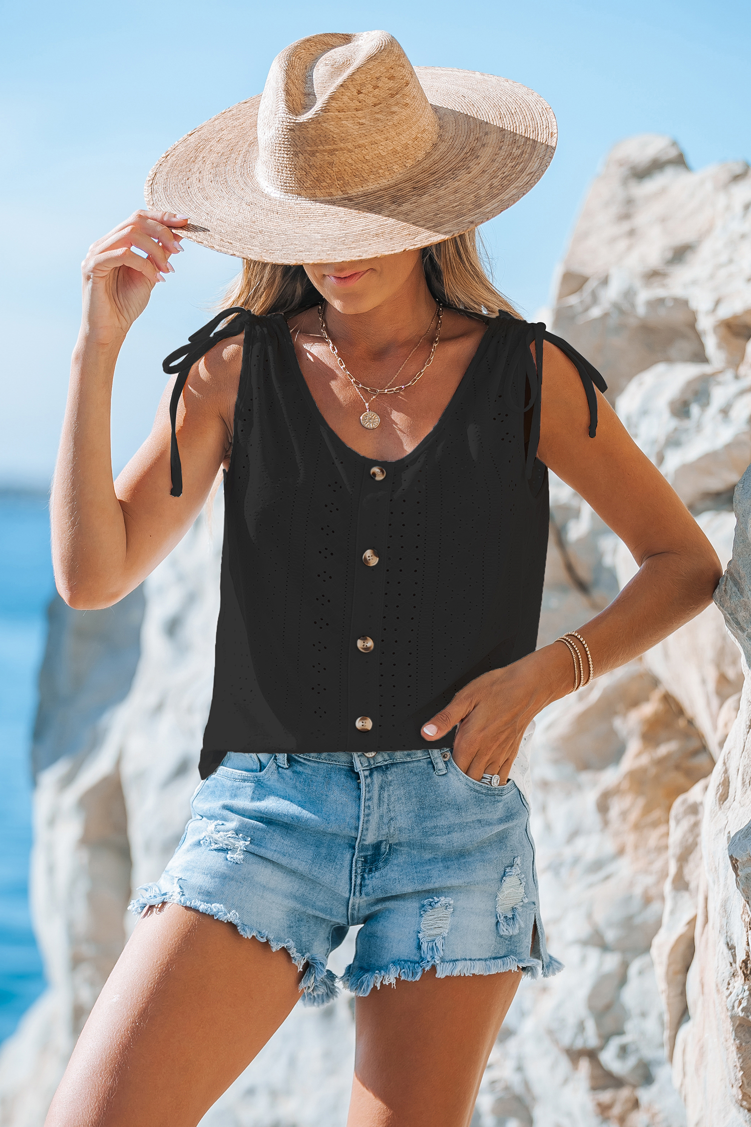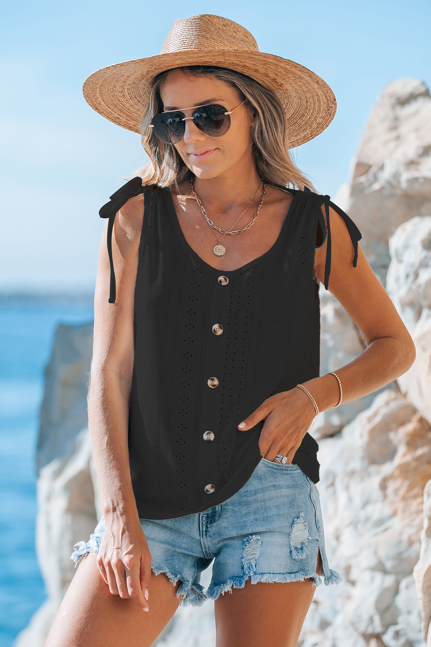 Camiseta sin mangas de jersey con botones delanteros y cuello redondo negra