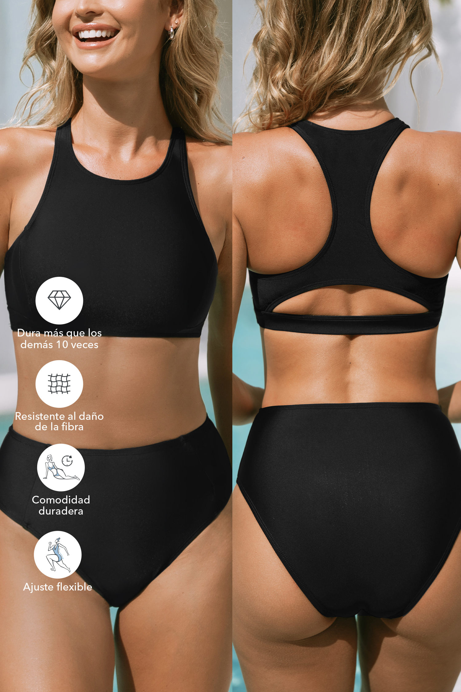 Conjunto de bralette de bikini deportivo negro de licra y braguita clásica