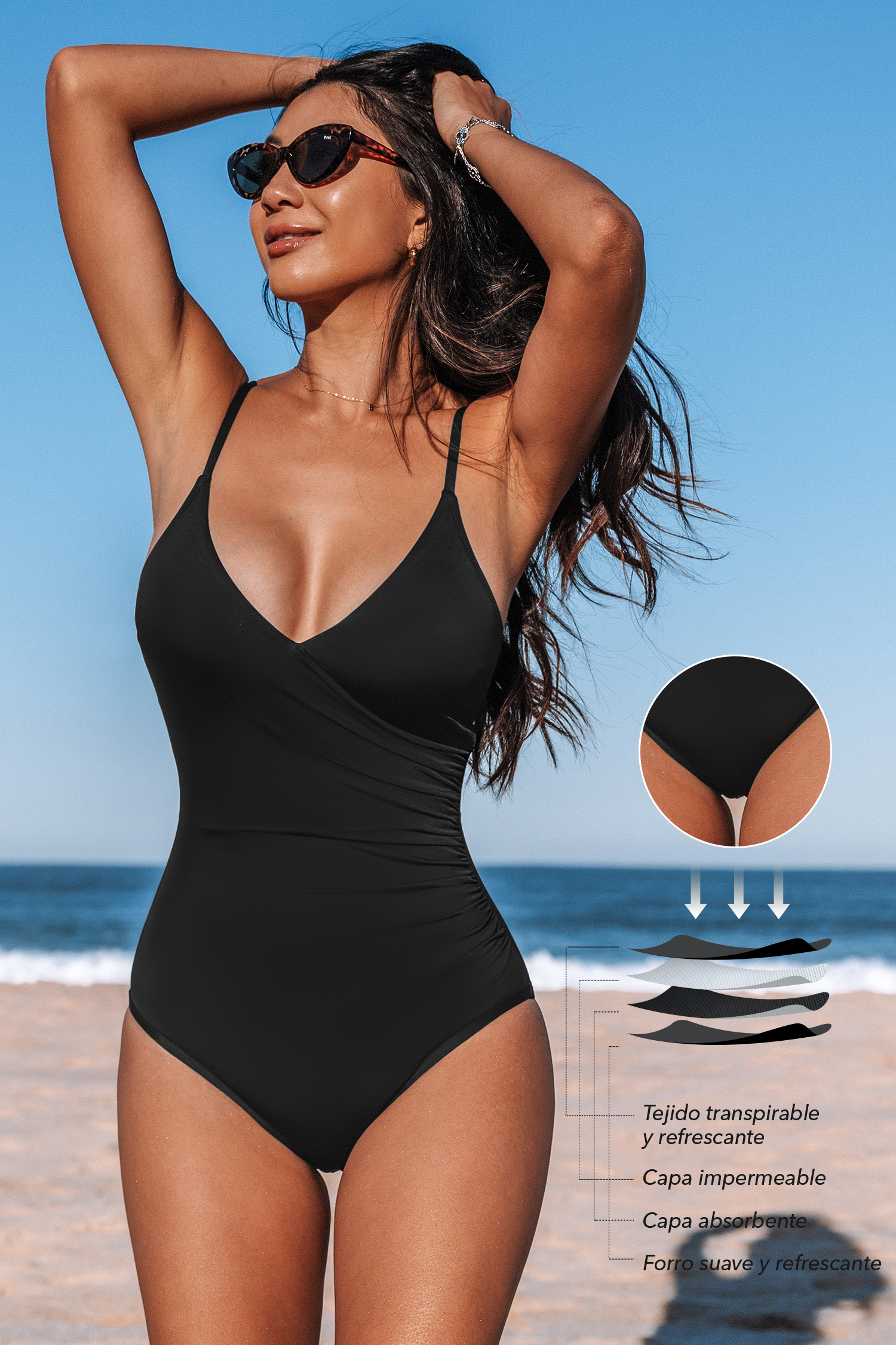 Traje de baño de una pieza con espalda con cordones y sobrepelliz negro de Period
