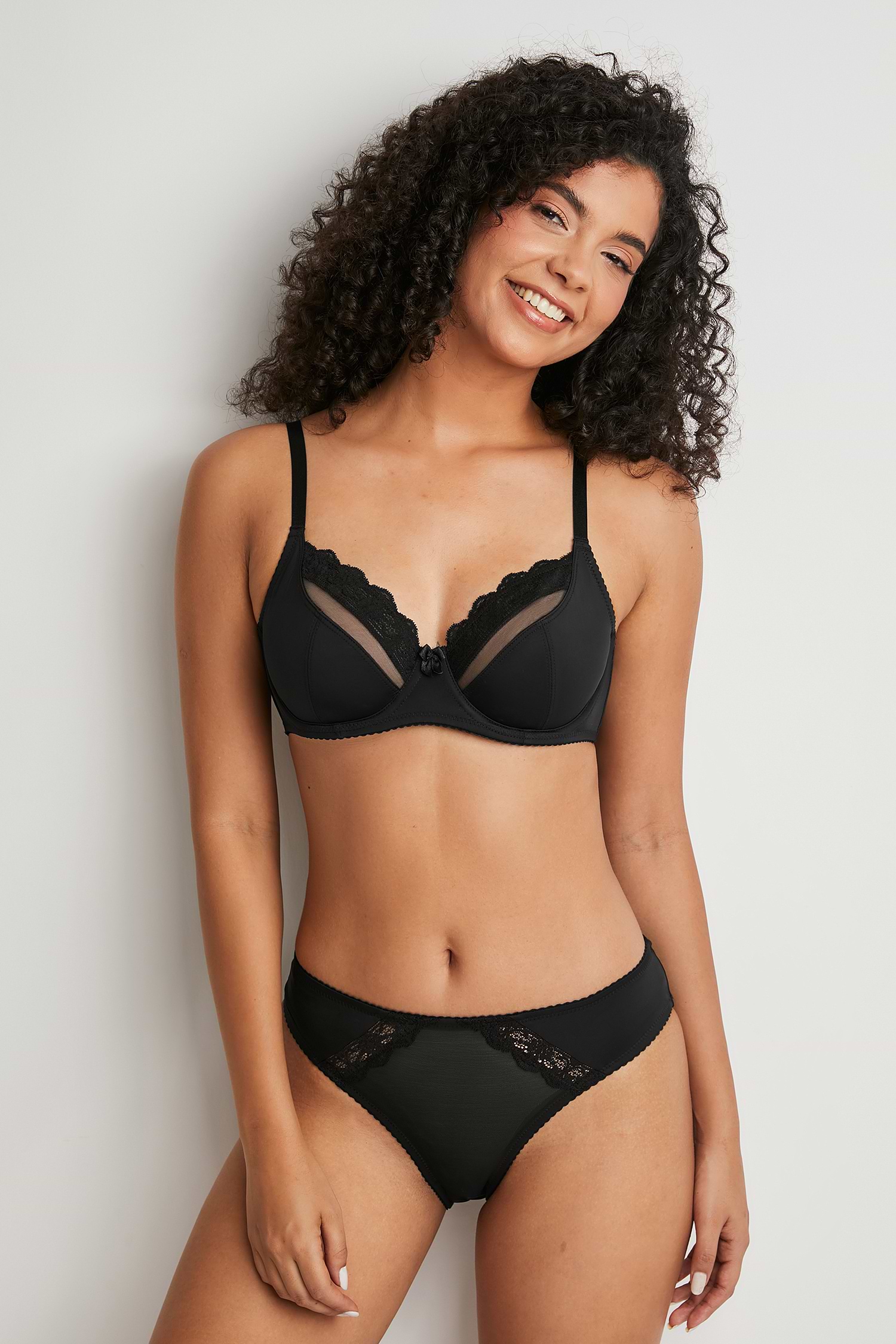 Conjunto de sujetador y ropa interior con aros en color negro
