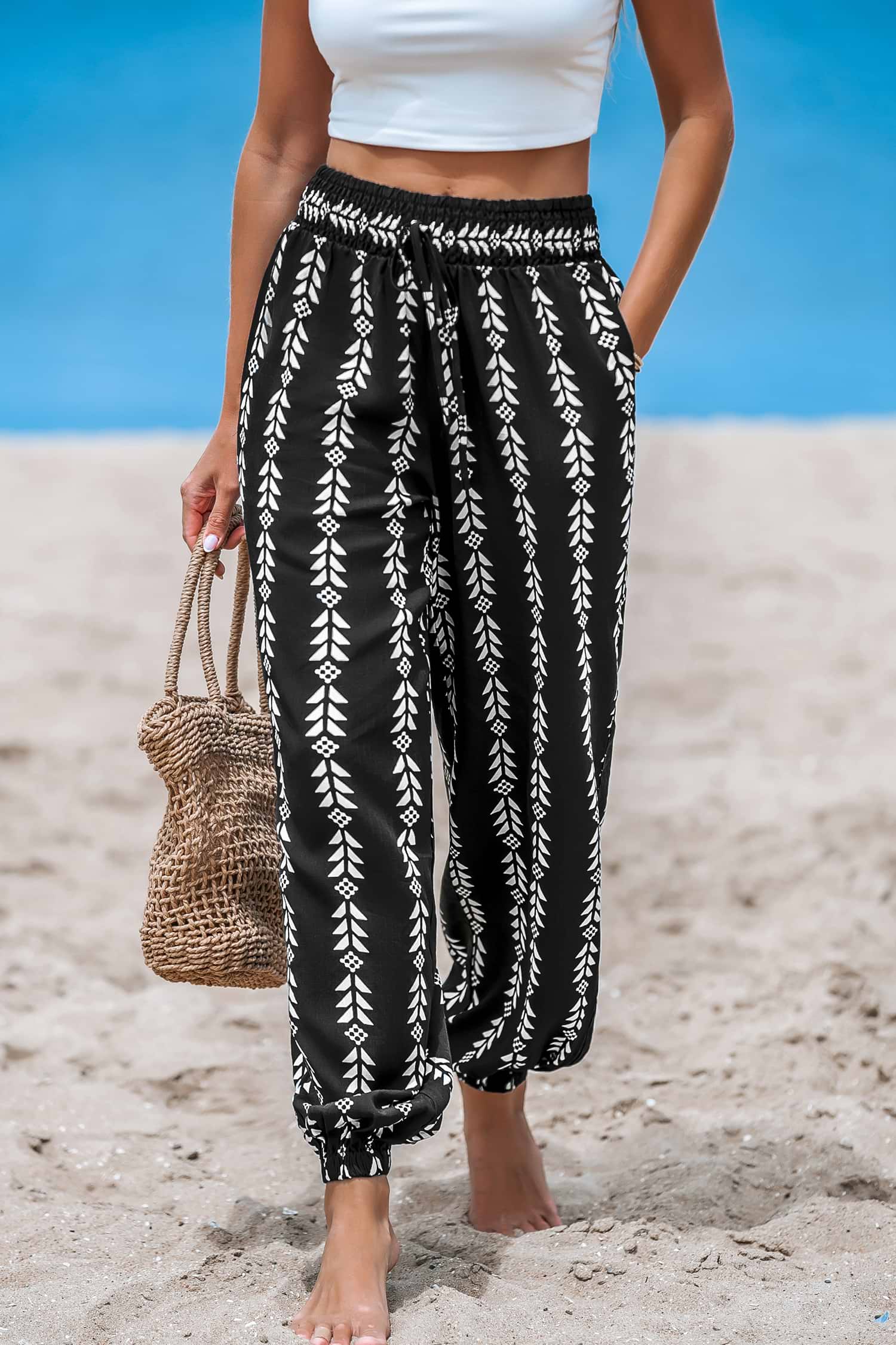 Pantalones cónicos a rayas con flechas en blanco y negro