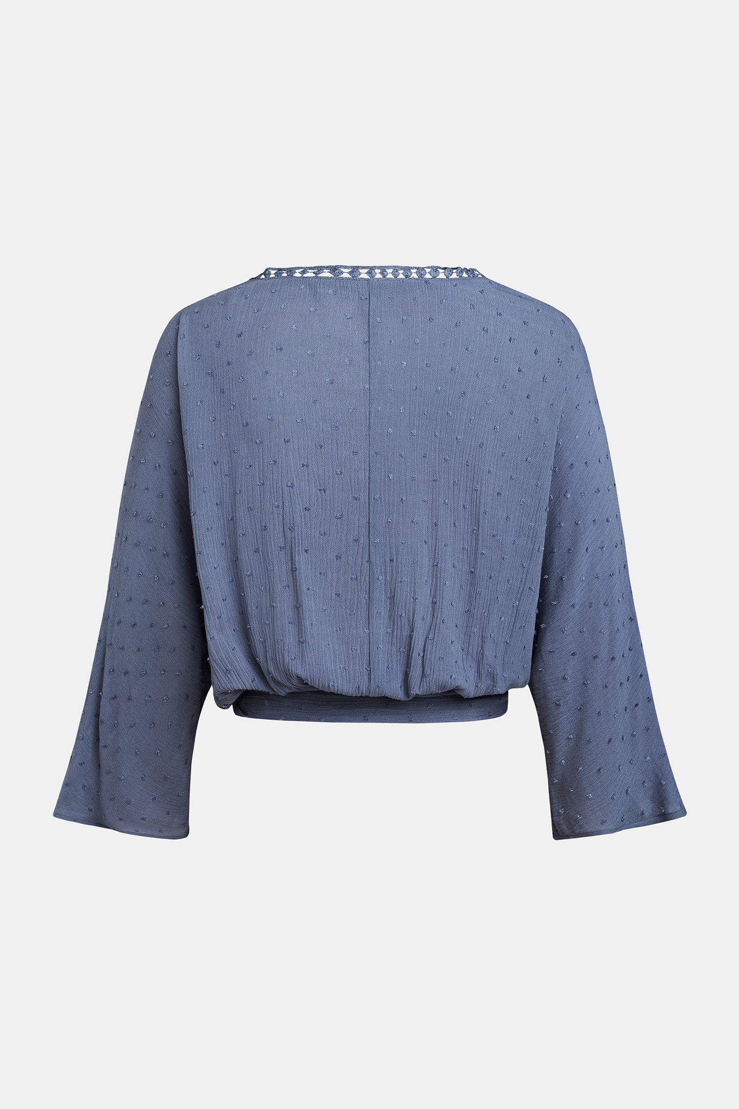 Blusa corta con lazo en la cintura y escote cruzado en azul