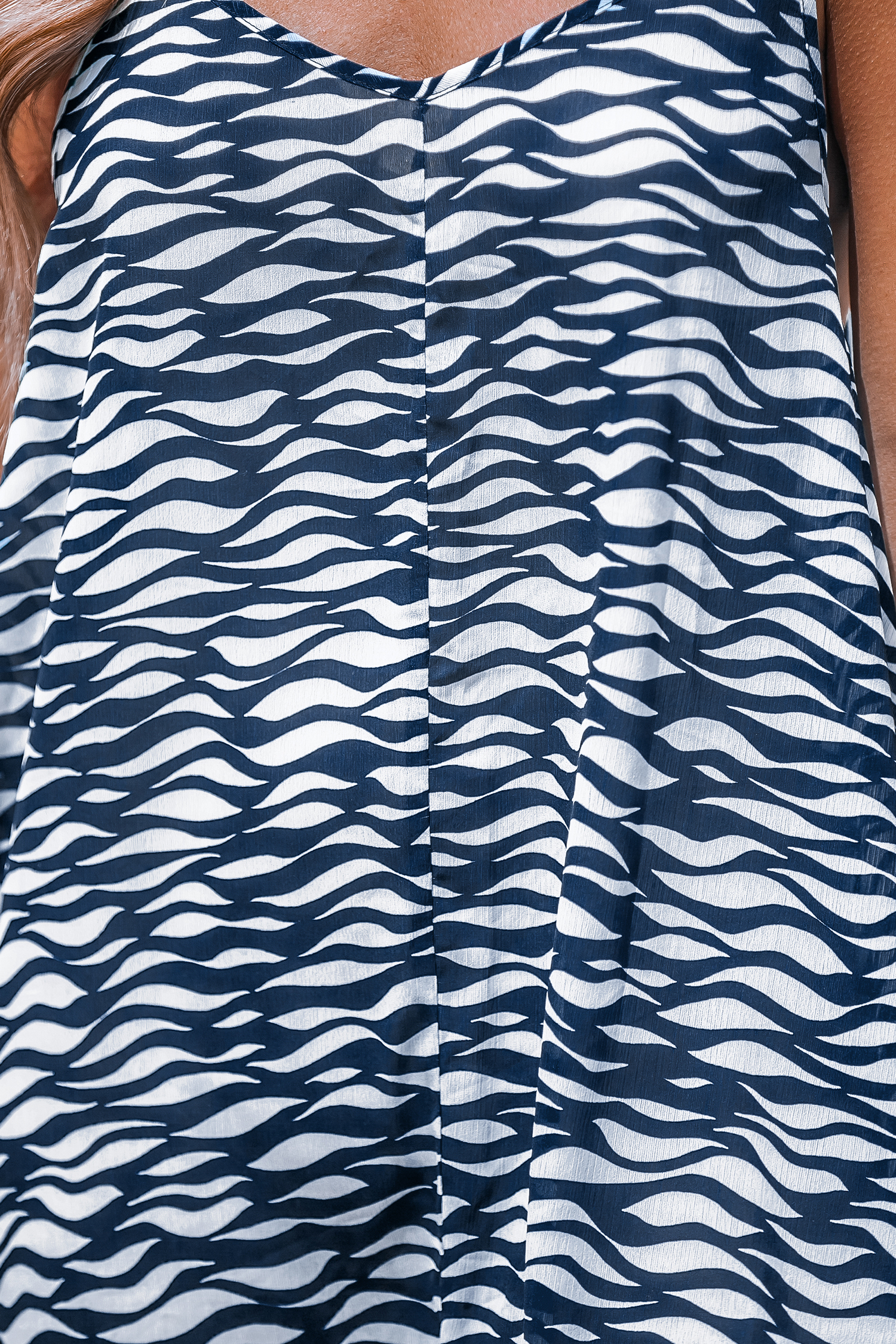 Vestido tipo pareo con dobladillo asimétrico sin mangas y ondas azules