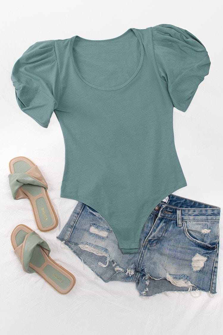 Body Ann con Cuello Redondo Mangas Abullonadas