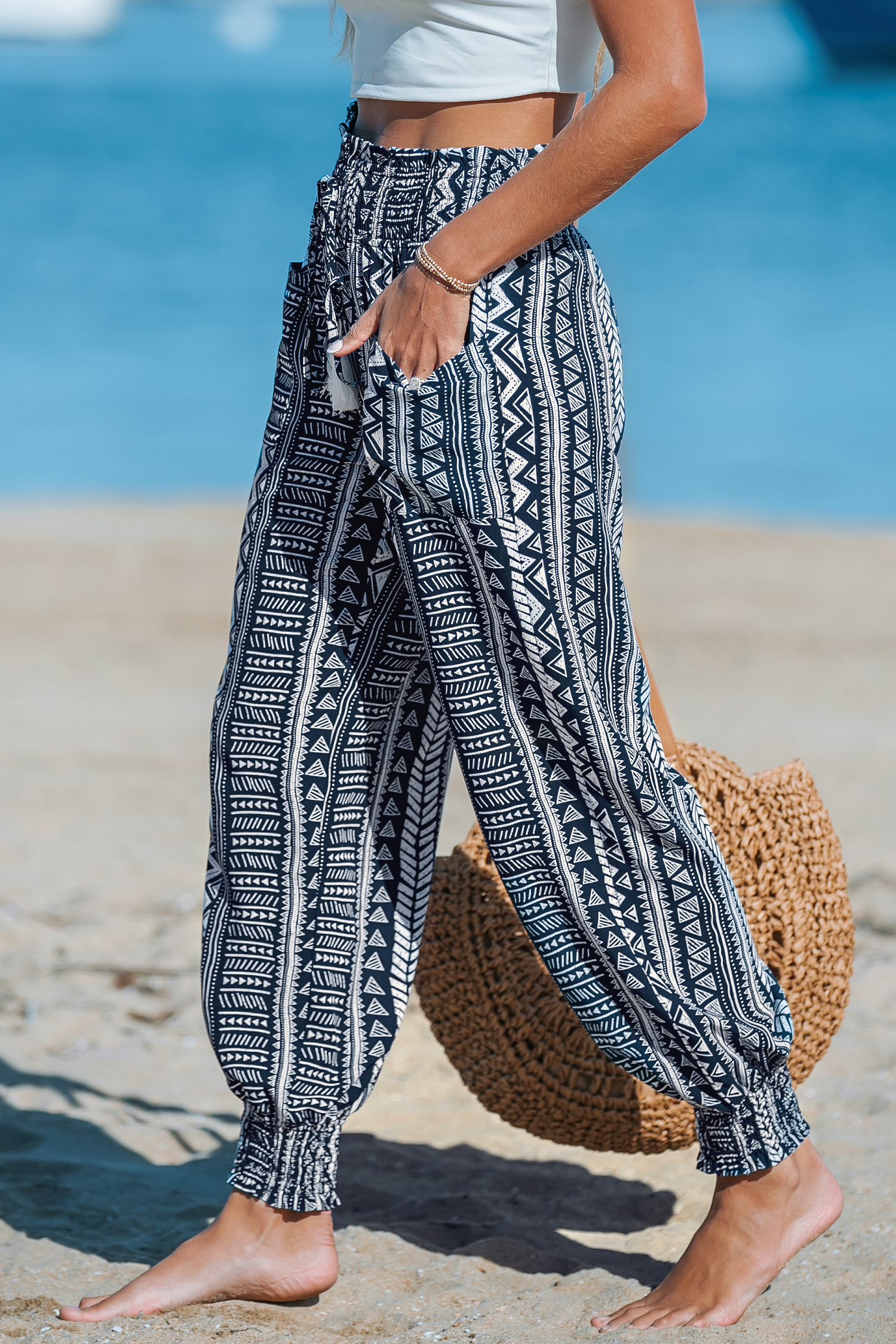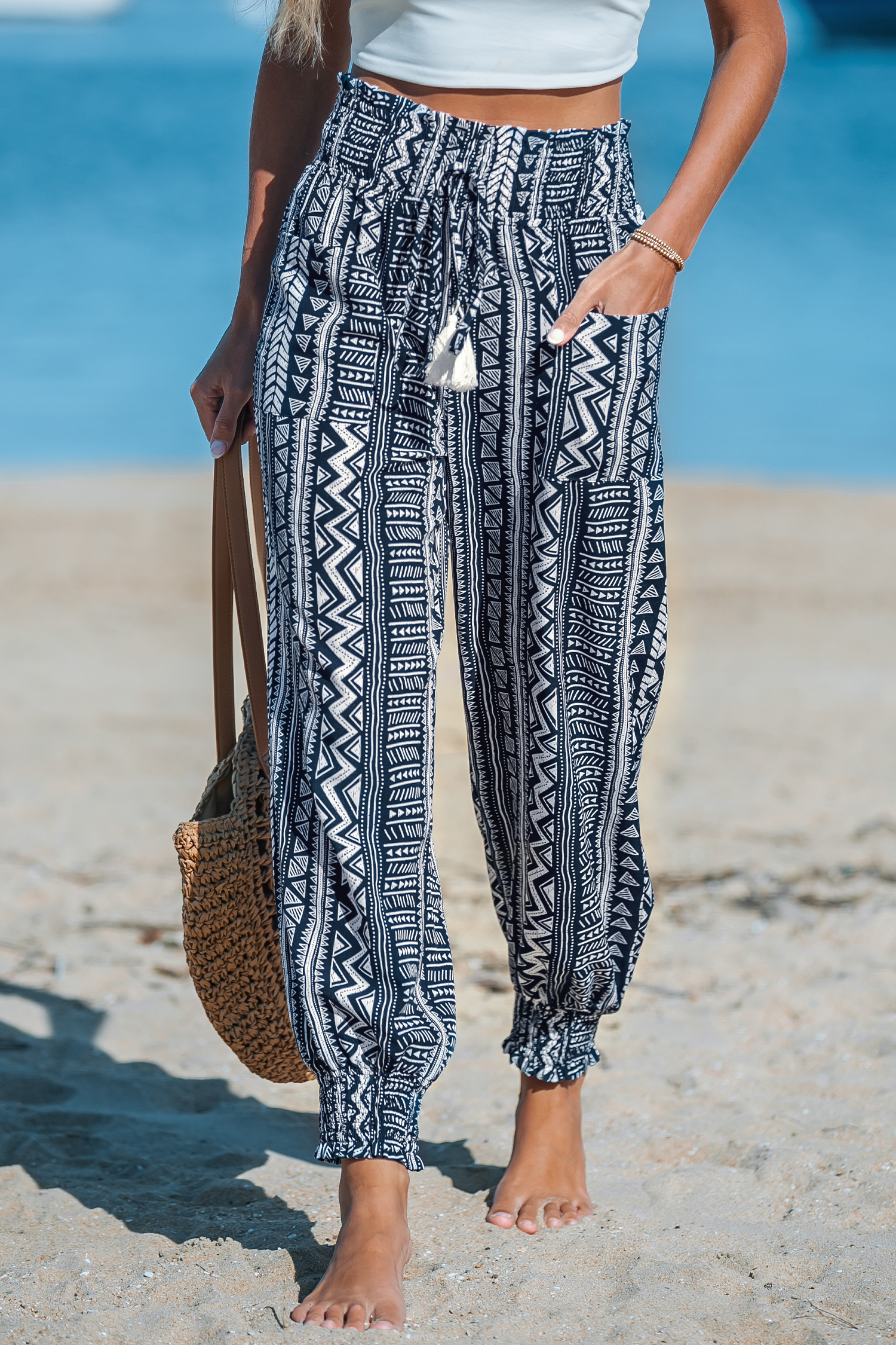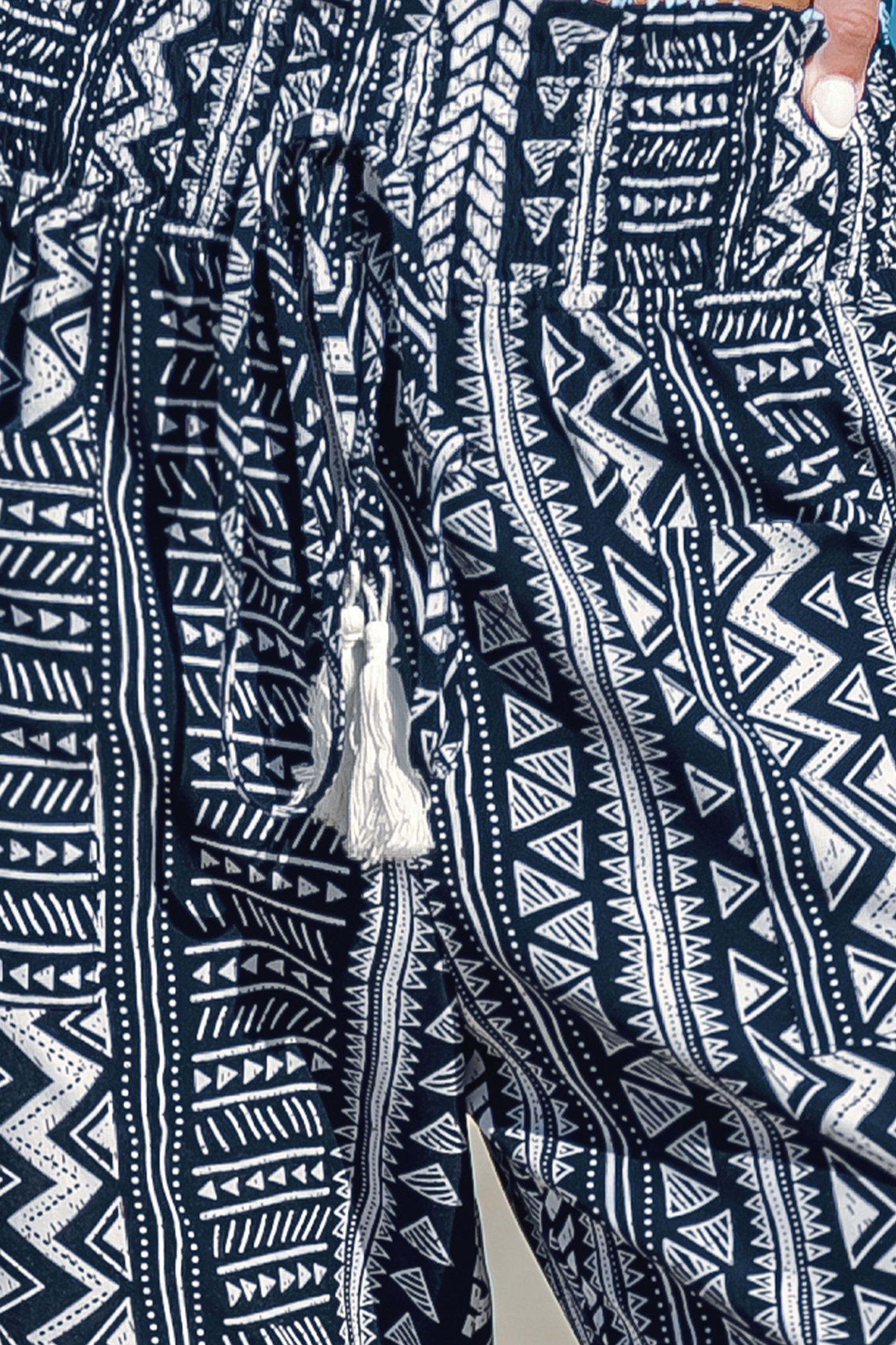 Pantalones bohemios cónicos con cordones y fruncidos