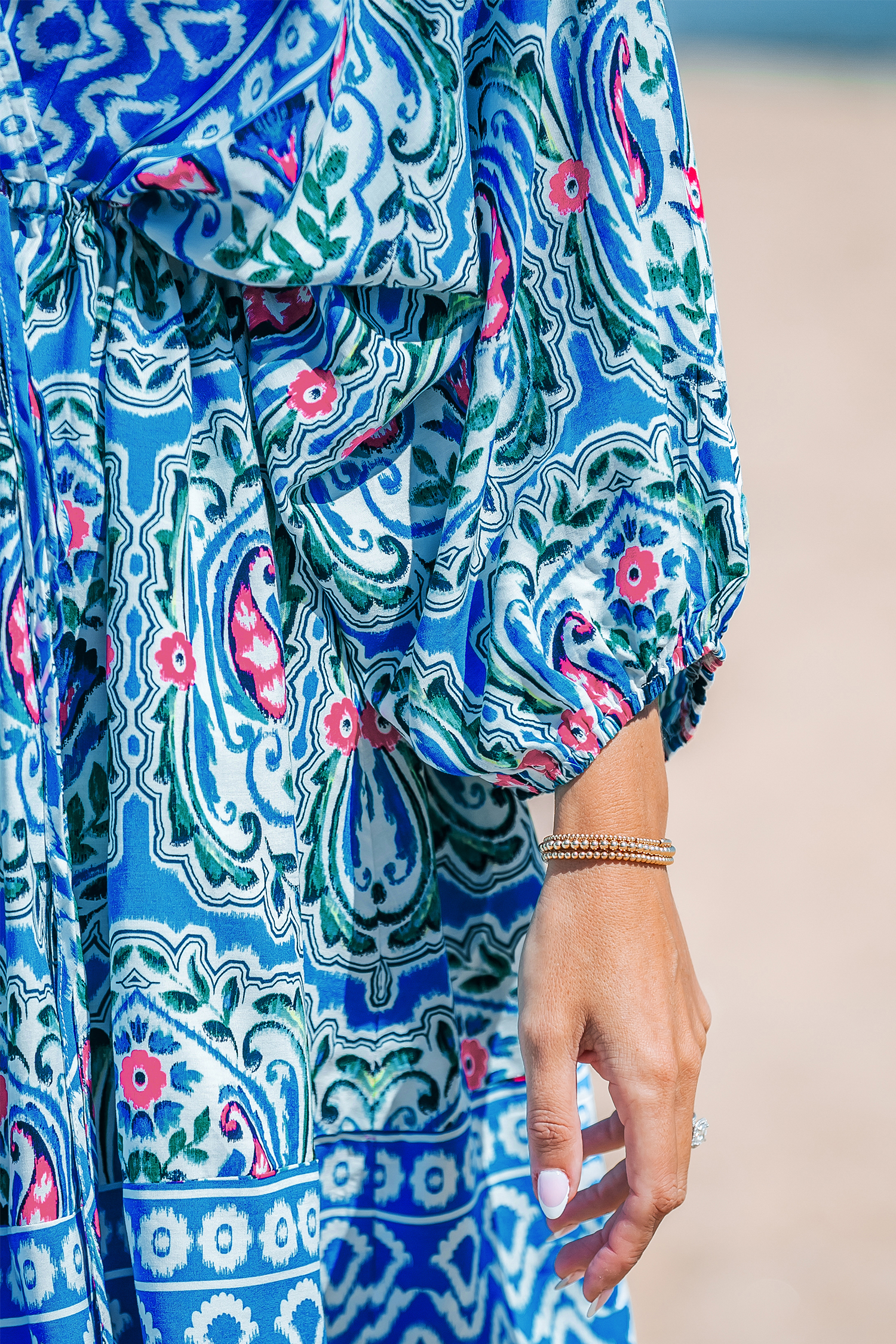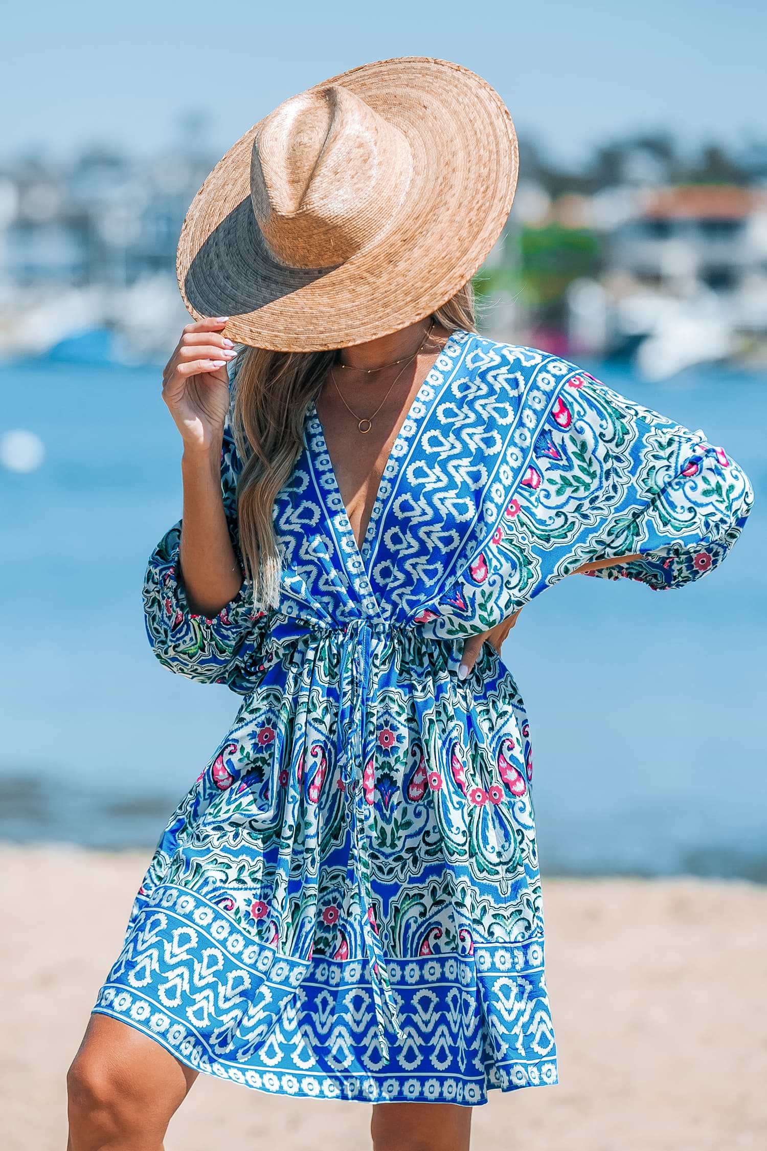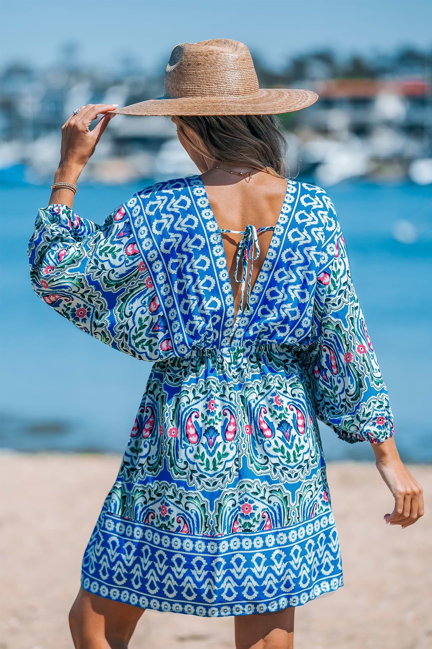 Minivestido bohemio con cuello en V y mangas abullonadas