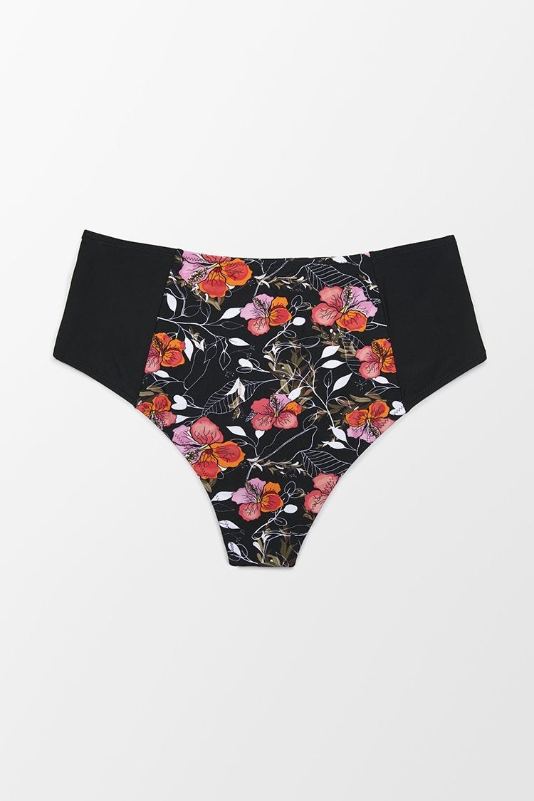 Braguita de Bikini Negro Floral de Cintura Alta Talla Grande