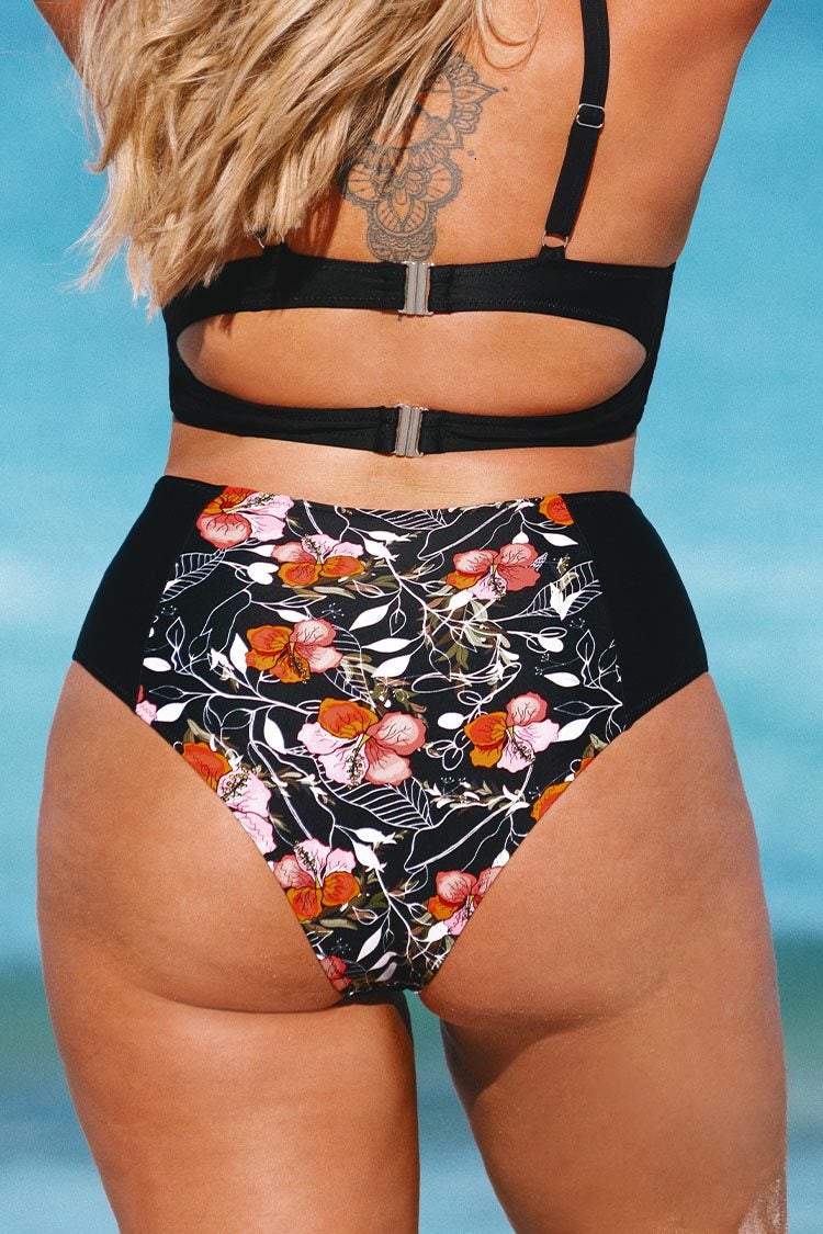 InicioBraguita de Bikini Negro Floral de Cintura Alta Talla Grande