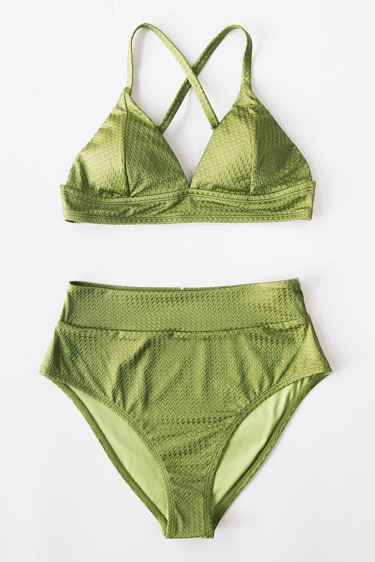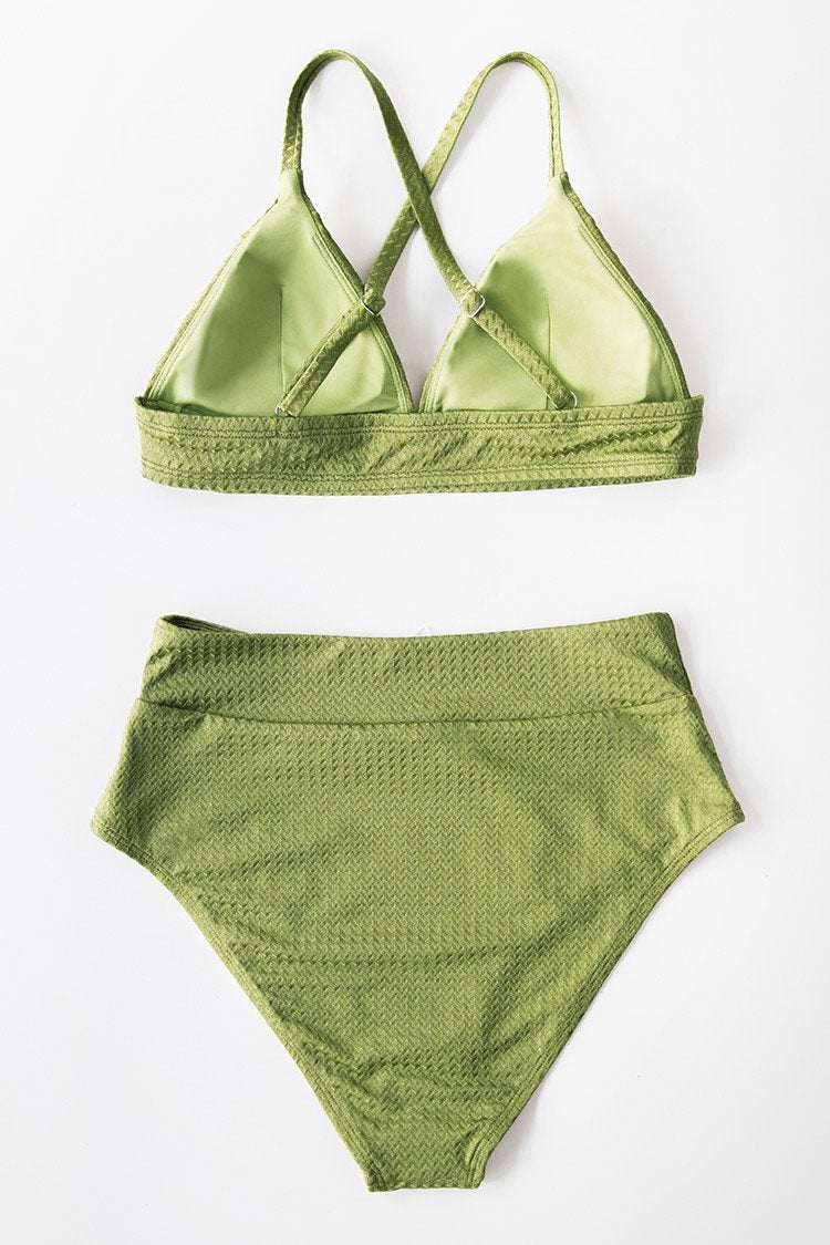 Braguita de Bikini Verde Texturizado con Cintura Alta