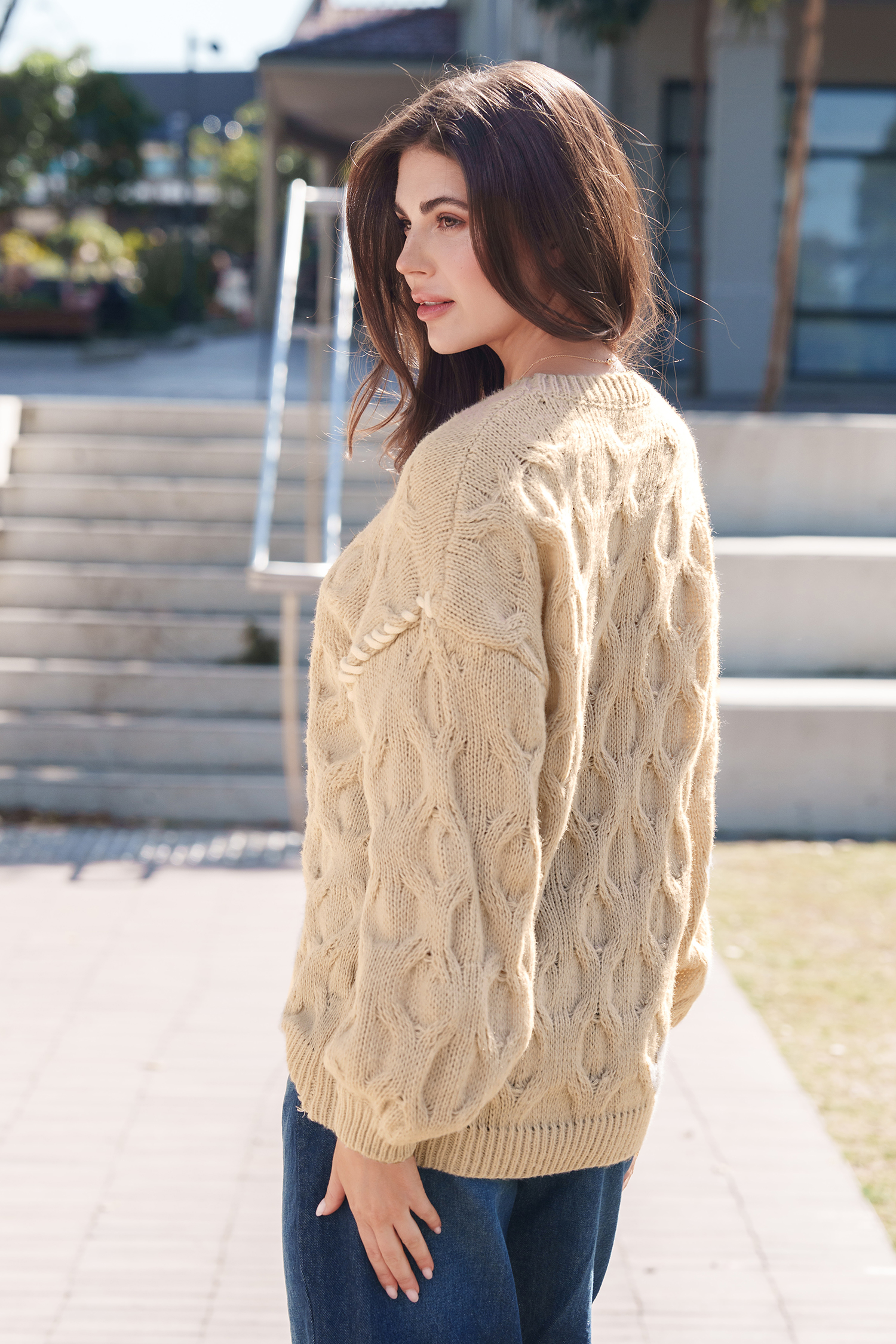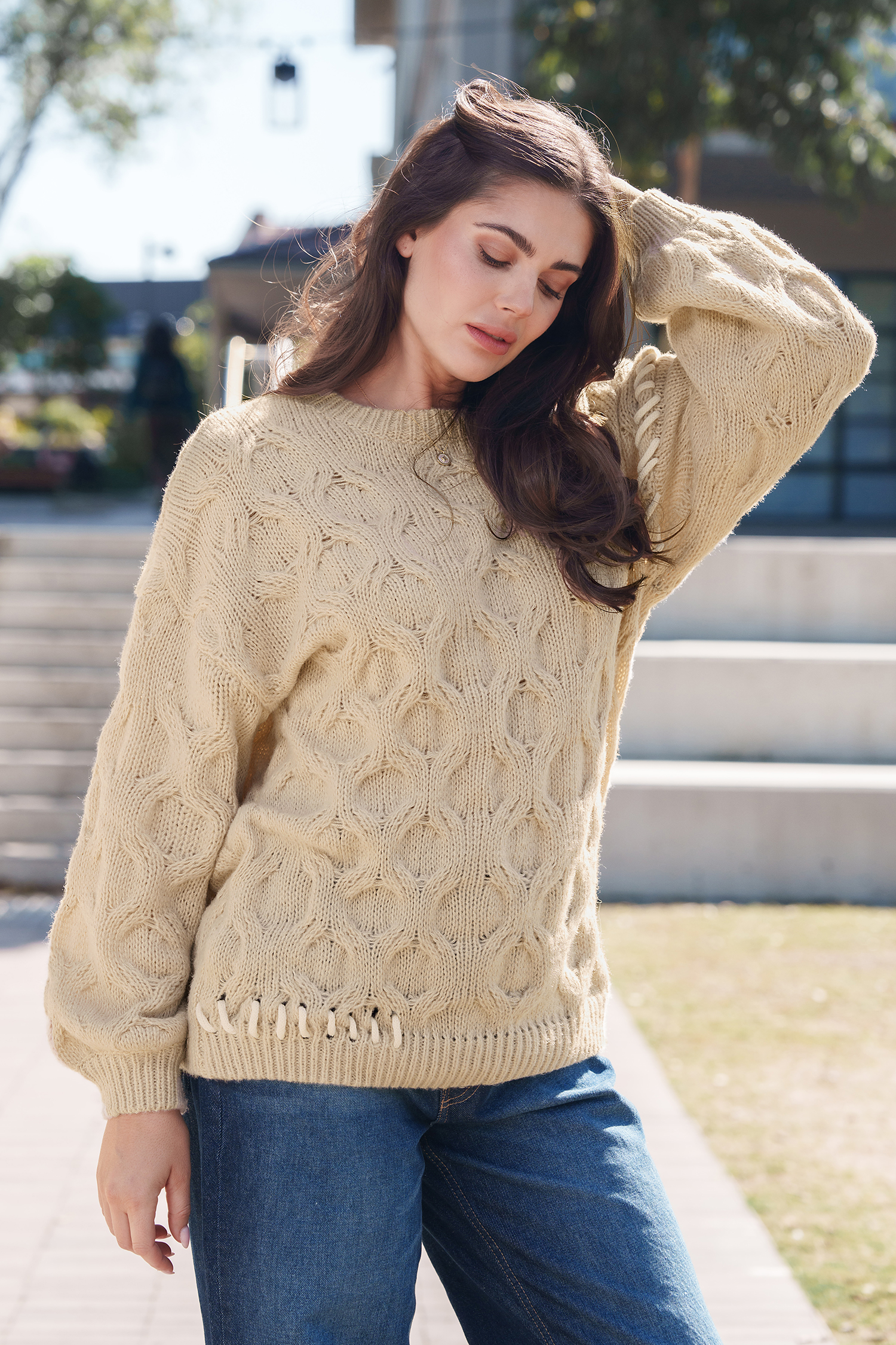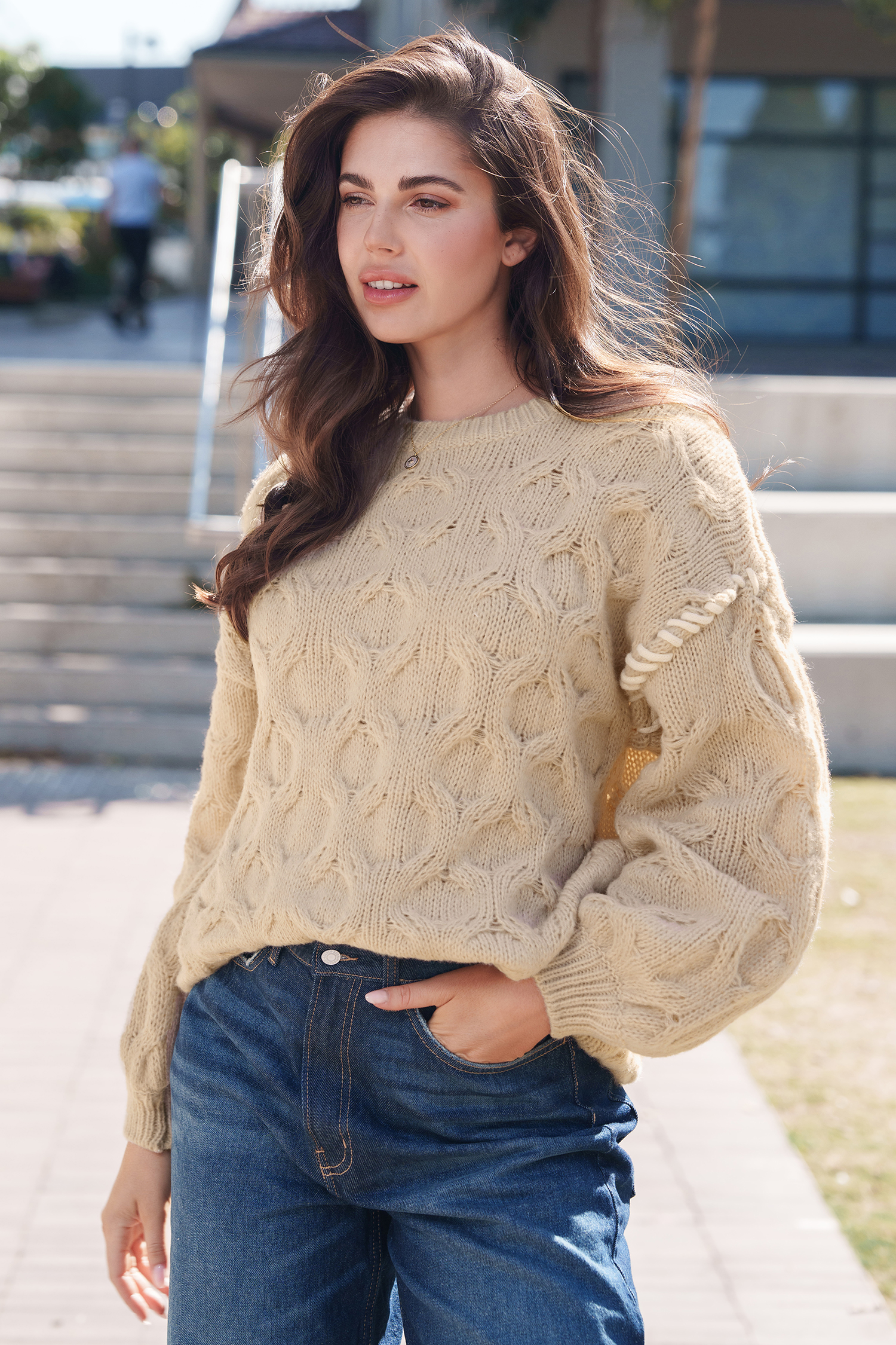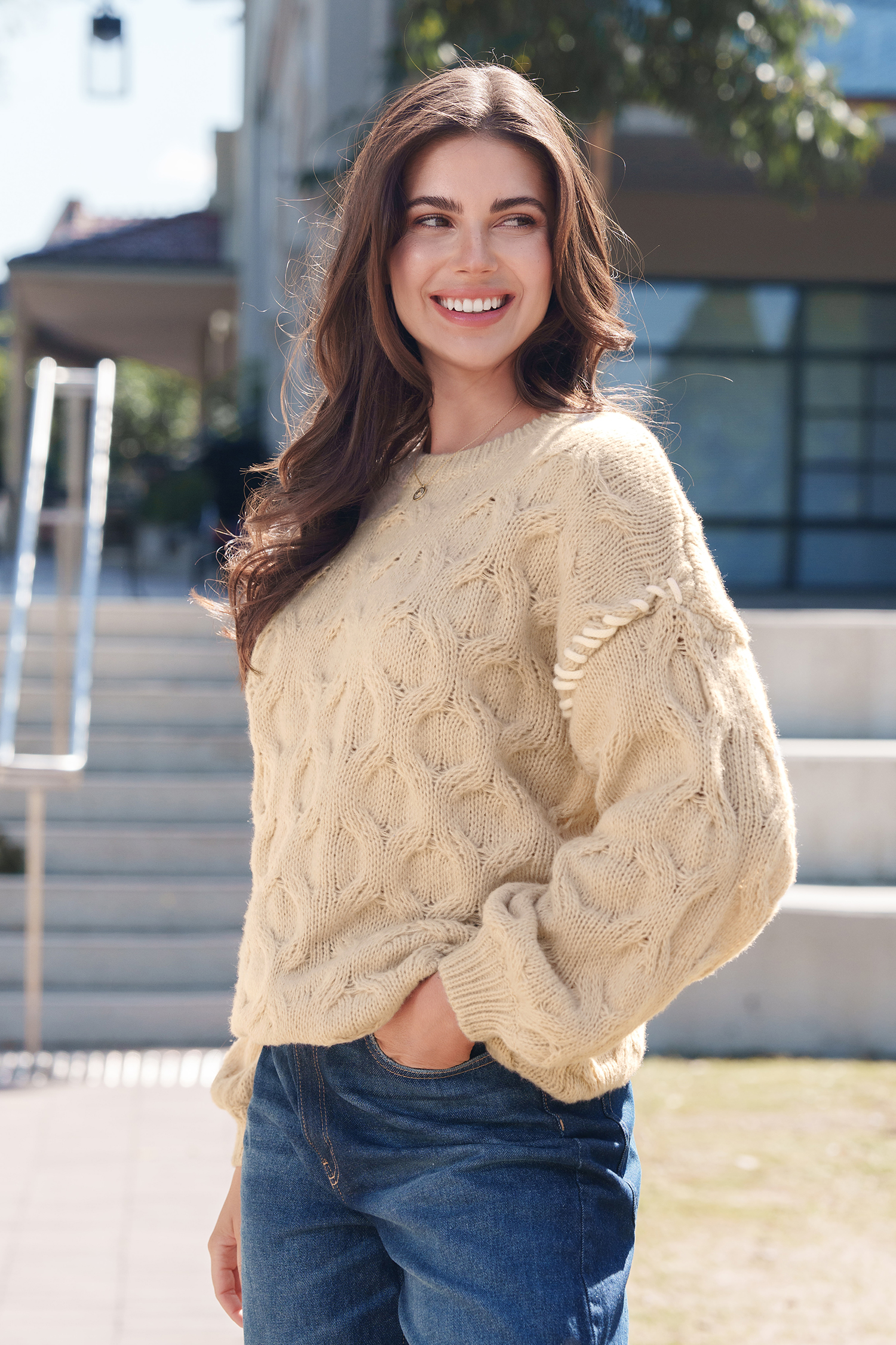 El suéter de cuello redondo de punto trenzado es un clásico atemporal que combina calidez y estilo. Su intrincado patrón de punto trenzado agrega textura, mientras que el cuello redondo garantiza un ajuste cómodo. Ideal para los días fríos, este suéter es una prenda imprescindible para tu guardarropa de otoño.