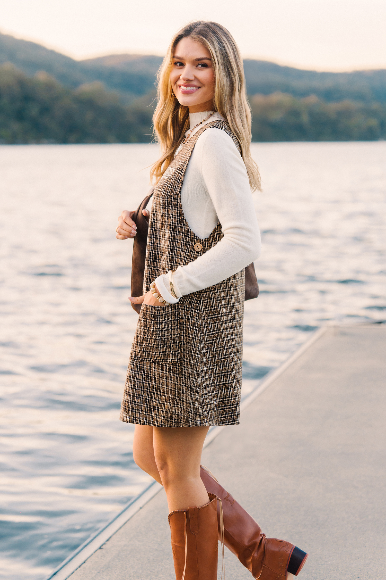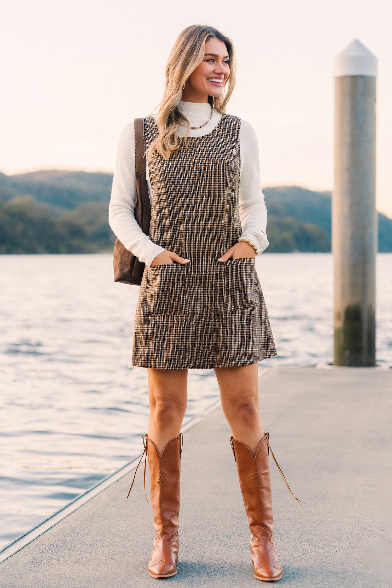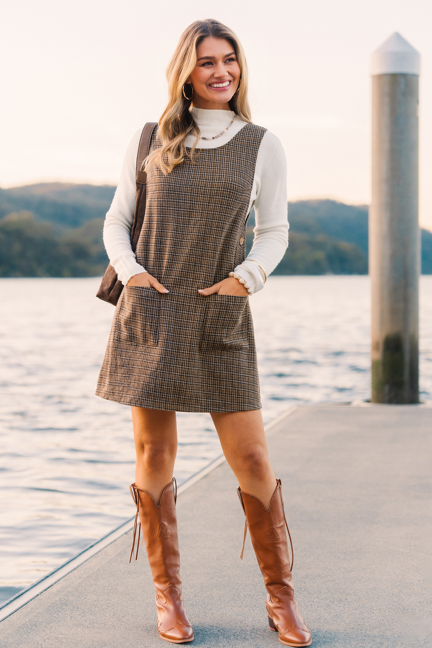 El minivestido a cuadros Cafe Mood es elegante y divertido, ¡ideal para llevar sin esfuerzo! Su escote redondo, sin mangas y su largo mini crean una silueta moderna y coqueta, perfecta para brunchs, cafés o planes de fin de semana.