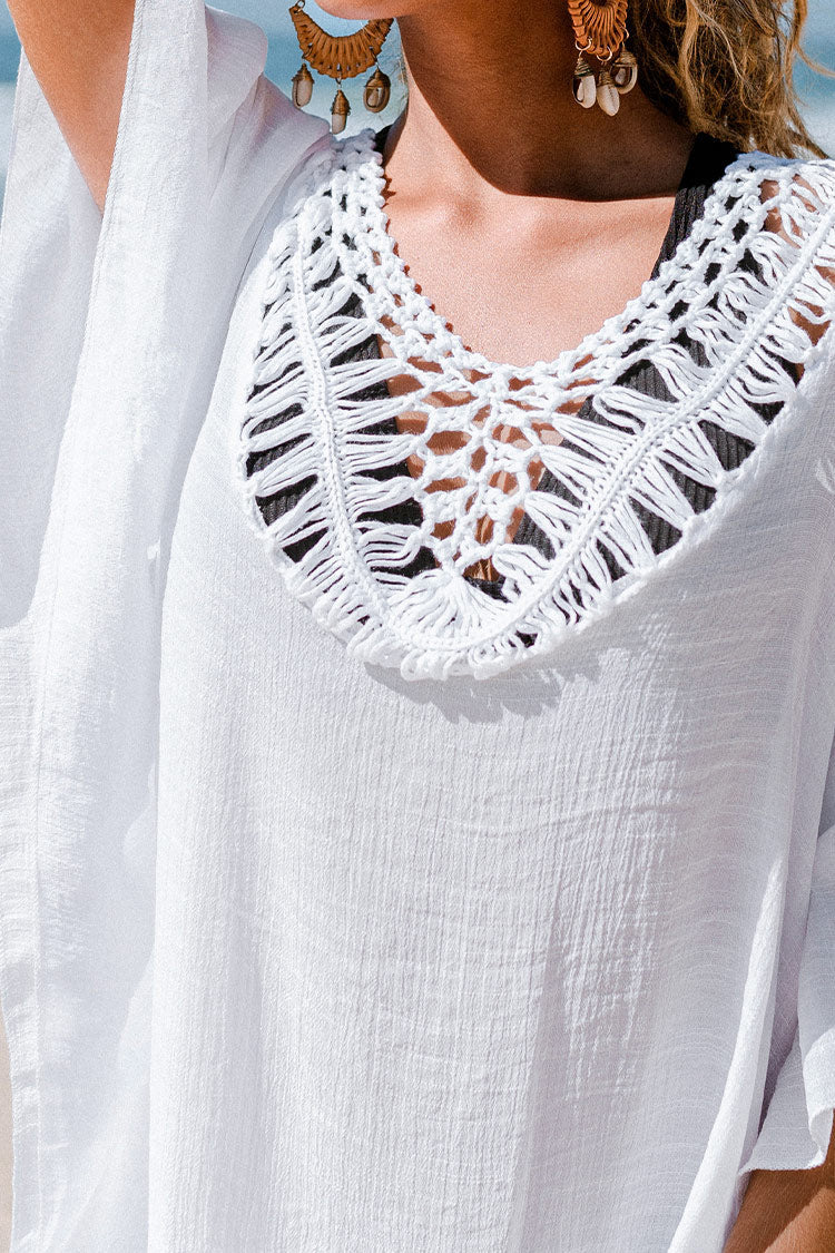 Caftán Croché Blanco con escote cuadrado y borla