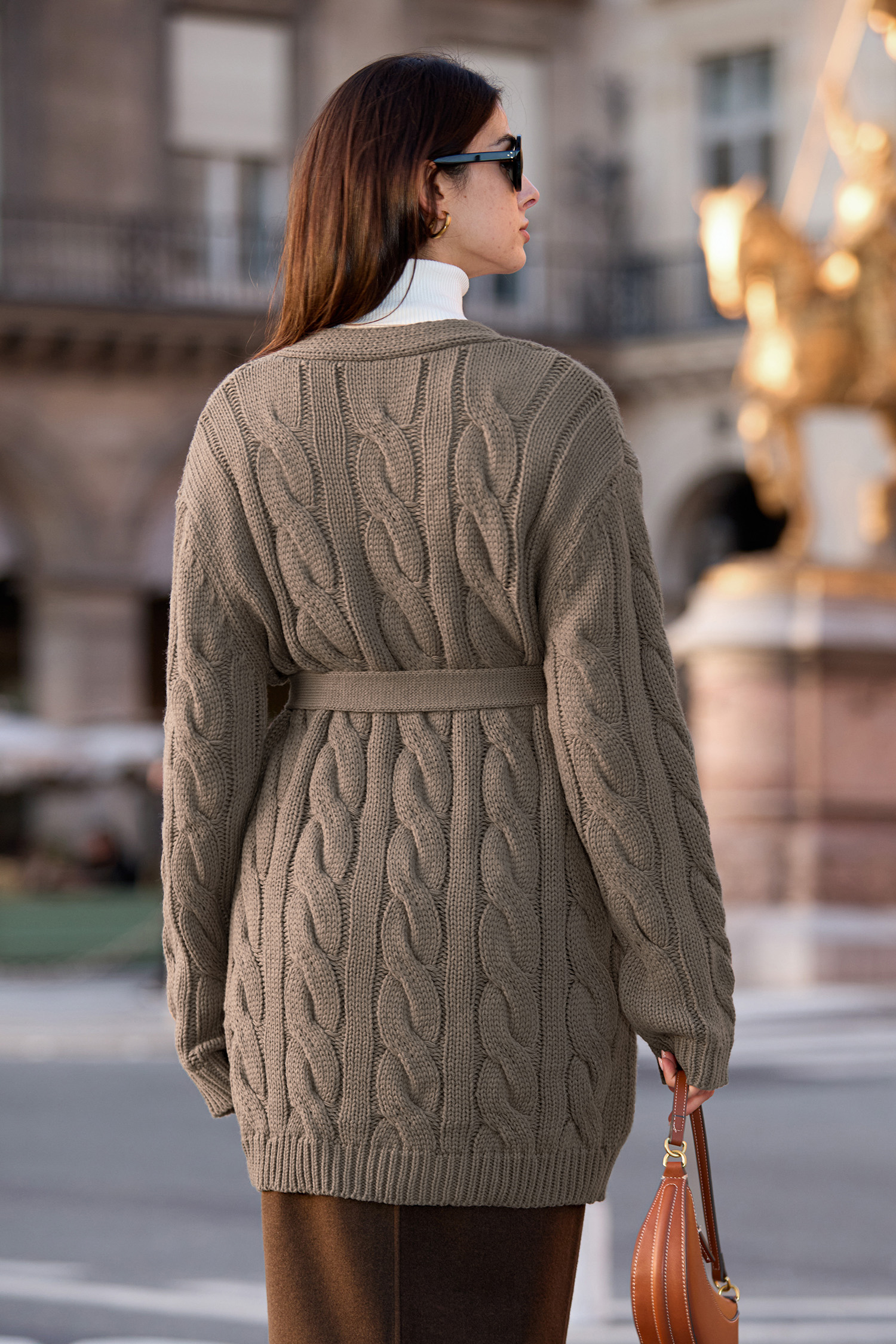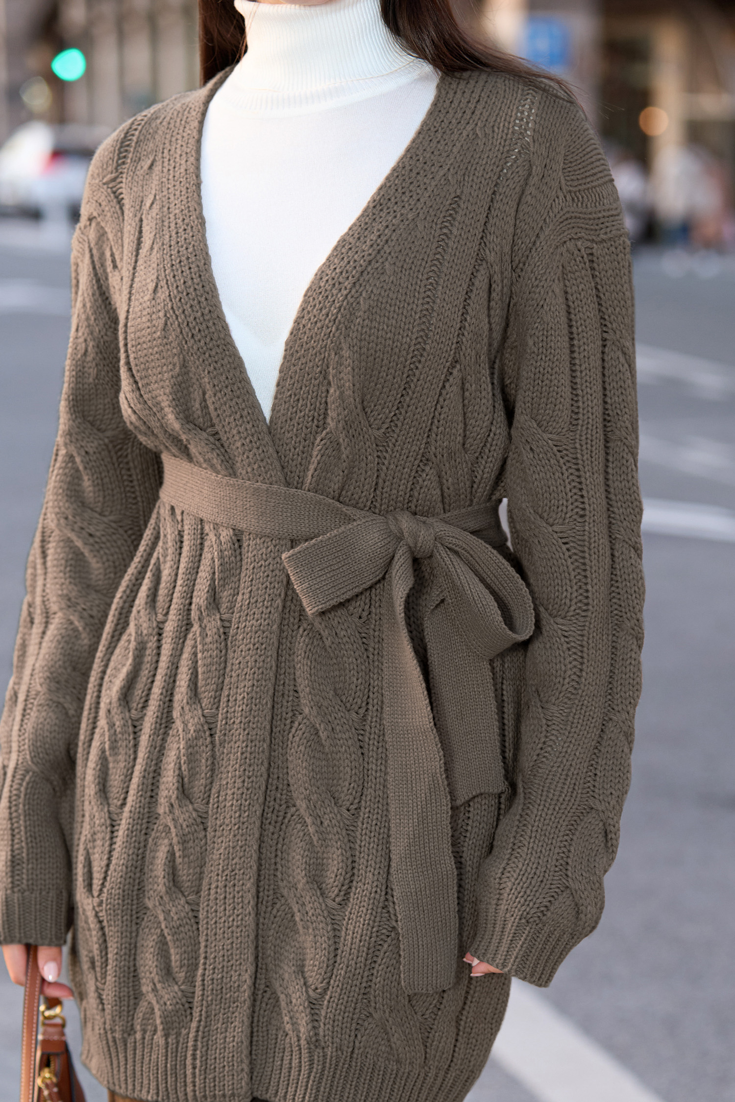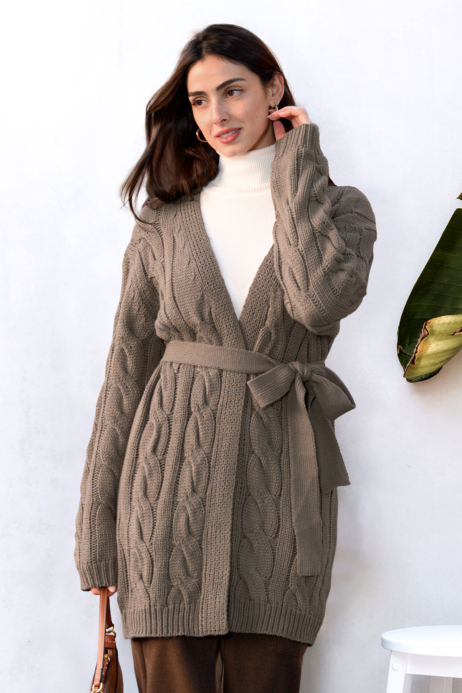 Cárdigan de punto con cinturón y mangas largas en color camello