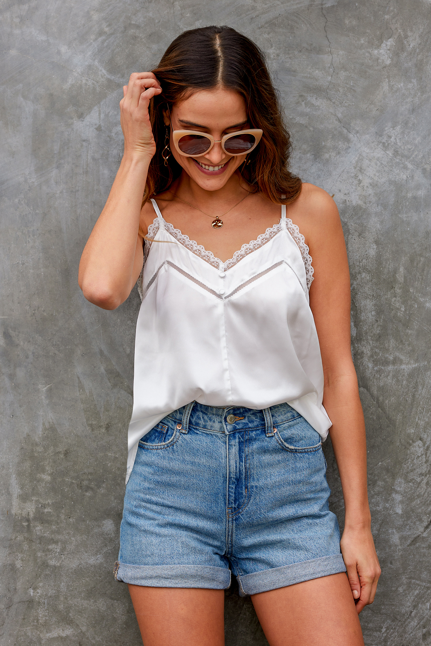 InicioCamisola de encaje con cuello en V