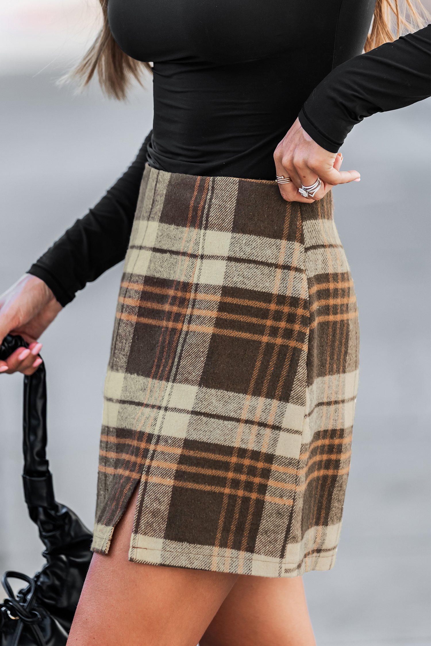 La minifalda a cuadros Caramel Drizzle es coqueta y perfecta para la diversión otoñal. De cintura alta y abertura lateral, es perfecta para combinar con prendas de punto abrigadas o tus botas favoritas.